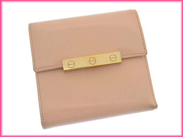 Cartier Bisplate Tri-fold Wallet / Love Collection Light Pink x Gold Women's Pre-owned