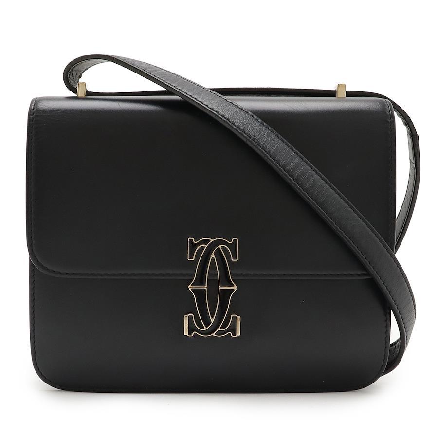 【商品説明】[サイズ]W19cm H16cm D4.5cm ショルダーストラップ最長約115cm(調節不可、金具含む)[材質]カーフスキン[カラー]ブラック[仕様]内側ポケット1、小ポケット1[付属品]外箱 保存袋 ミラー[重さ]約500g
