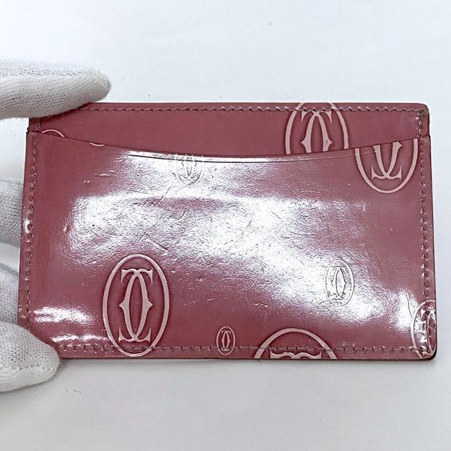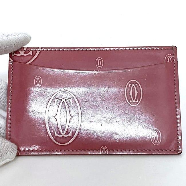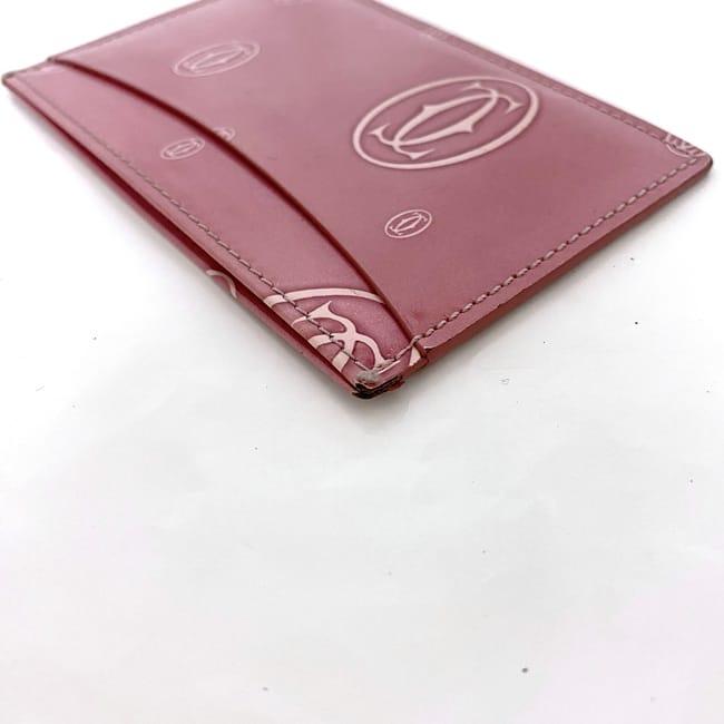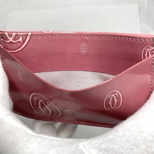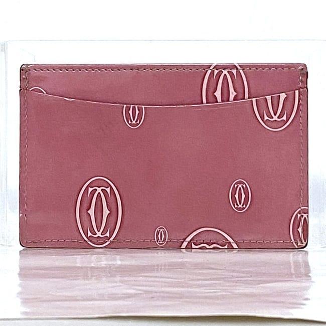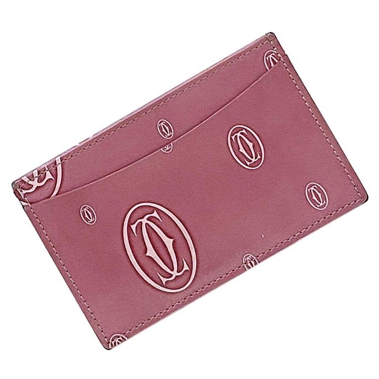カルティエ カードケース ec-22648 ピンク ハッピーバースデー 美品 レザー 中古 Cartier 総柄 ホルダー 定期入れ 名刺 ケース クレジットカード ロゴ 定番 人気 小さい 小物 カード 革 お洒落 女性 レディース シンプル 高級感 上品 ブランド 本物 鑑定済み