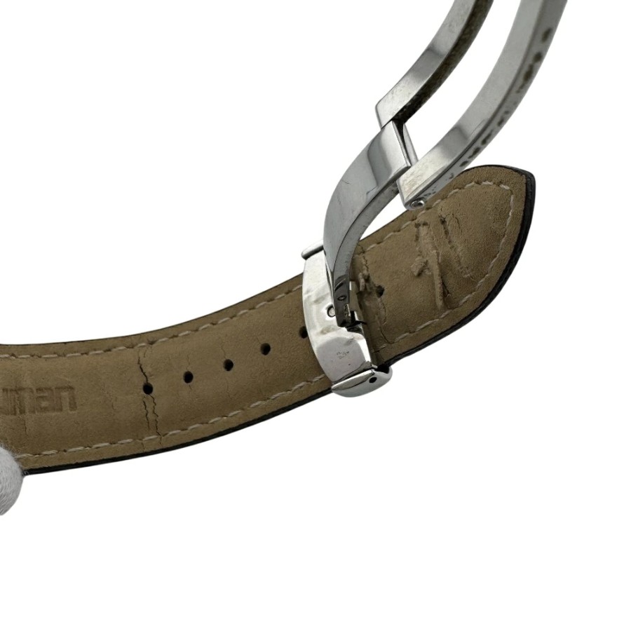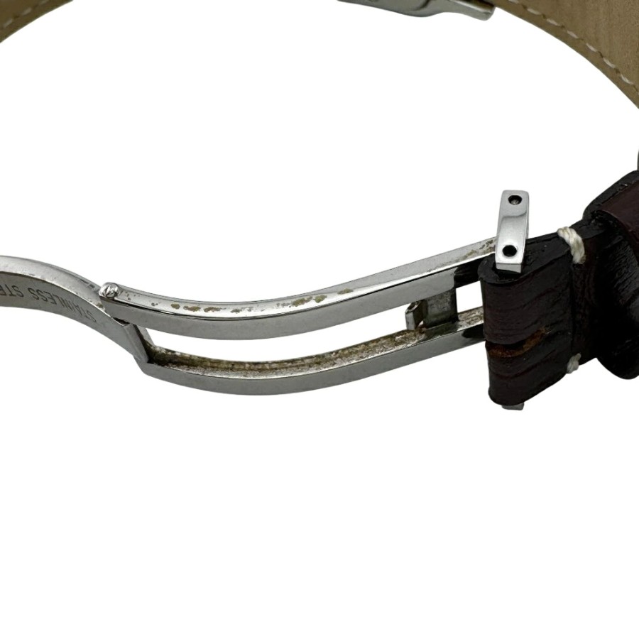 | 状態 | 【外・表面】擦れ、キズ、汚れ 【外・ハンドル-ストラップ】擦れ、キズ、剥がれ、破れ、黒ずみ、シワ、ベルト社外? 【外・形状】少し型崩れ 【におい】匂いあり(強くない) 【金具部分】擦れ、キズ、錆、変色 現在停止しておりますが電池交換にて動作いたしますので時計店にて電池交換後にご使用ください。長時間での動作確認はおこなっておりませんので細かな時差等は確認できておりませんので予めご了承の上ご検討ください。 |