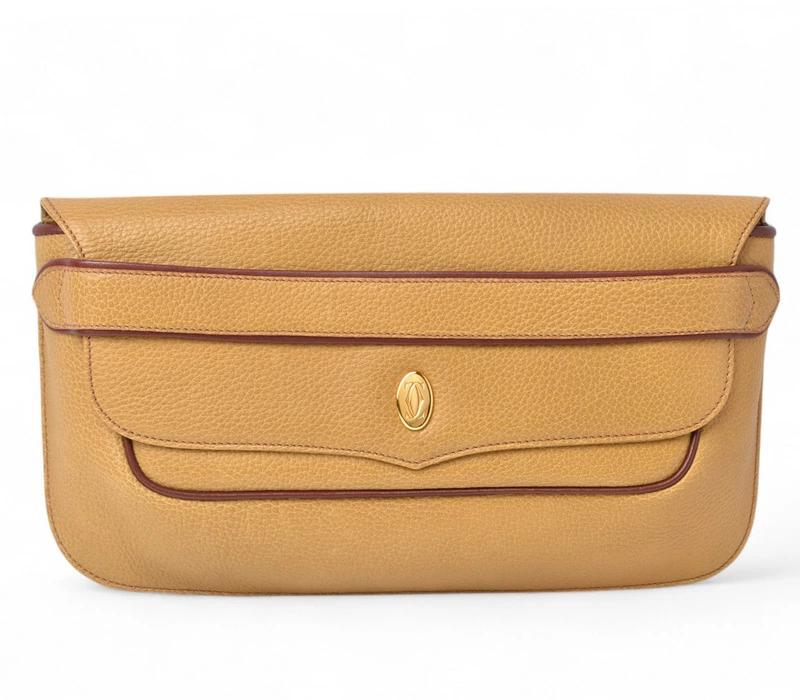 カルティエより、マストライン、クラッチバッグです。落ち着いたキャメルカラー、上質な手触りの良いレザーで、気品を漂わせます。ヴィンテージならではのクラシックな魅力。1980年代に登場した「マストドゥ カルティエ」ライン特有のエレガントなフォルムと、深みのあるカラーが特徴。ヴィンテージアイテムは、その一つひとつが唯一無二。歴史を感じるディテールと、持つ人の個性を引き立てる存在感が際立ちます。この「マストドゥ カルティエ」、今なおファンを魅了し続けるコレクターズアイテムとしても人気です。