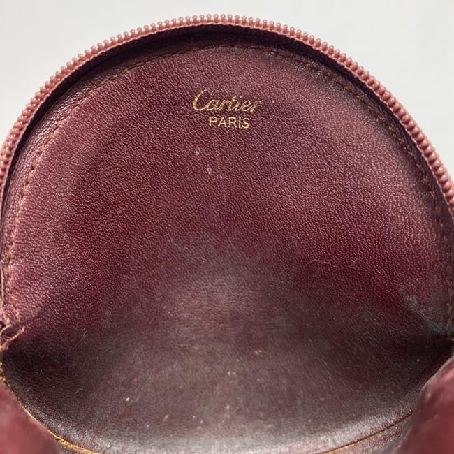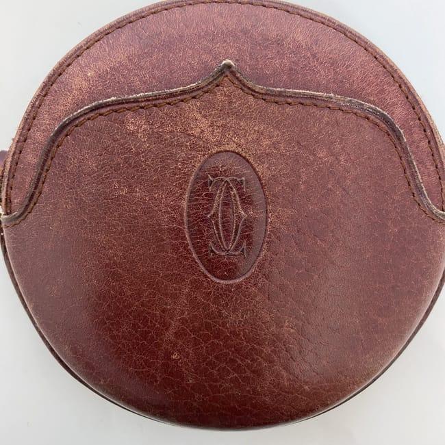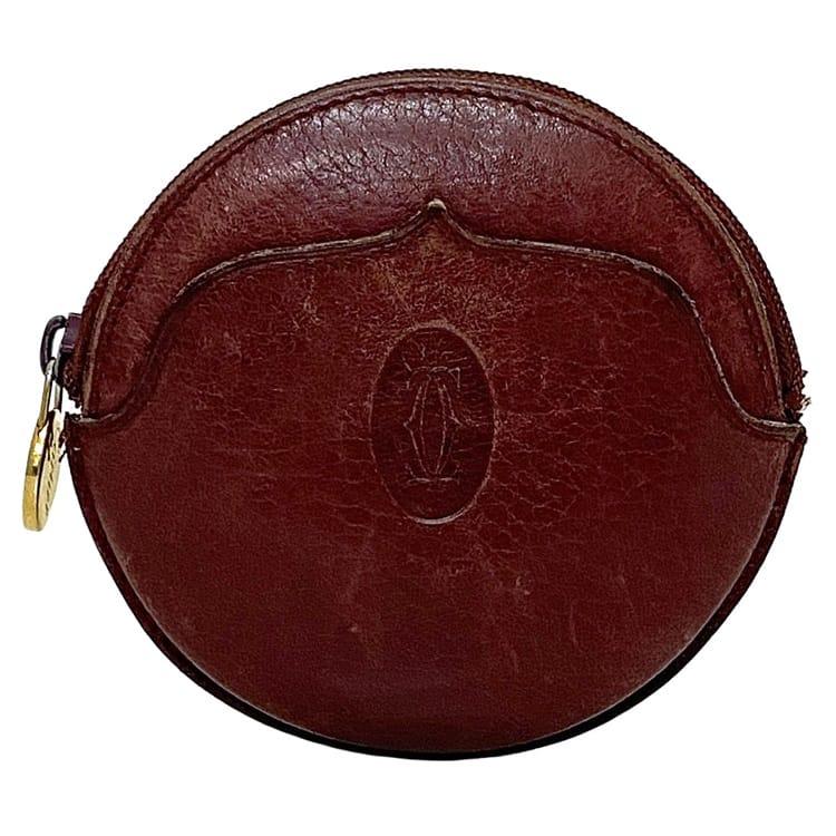 カルティエ コインケース ec-22481 ボルドー マスト 小銭入れ ラウンド レザー 中古 Cartier ファスナー ミニ 財布 ヴィンテージ ロゴ 定番 人気 女性 レディース メンズ 小さい 革 ケース 小銭 コイン レトロ お洒落 丸い 高級感 上品 ブランド 本物 鑑定済み