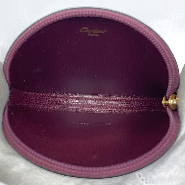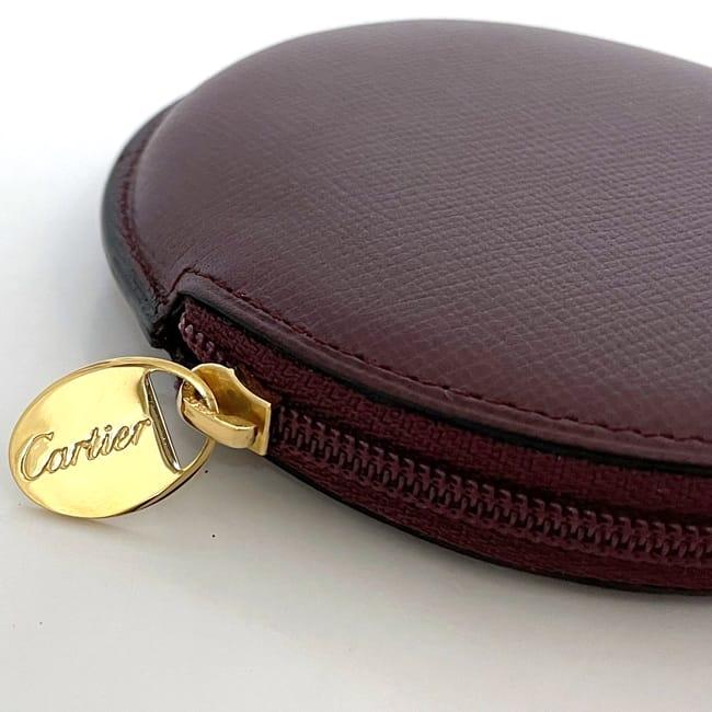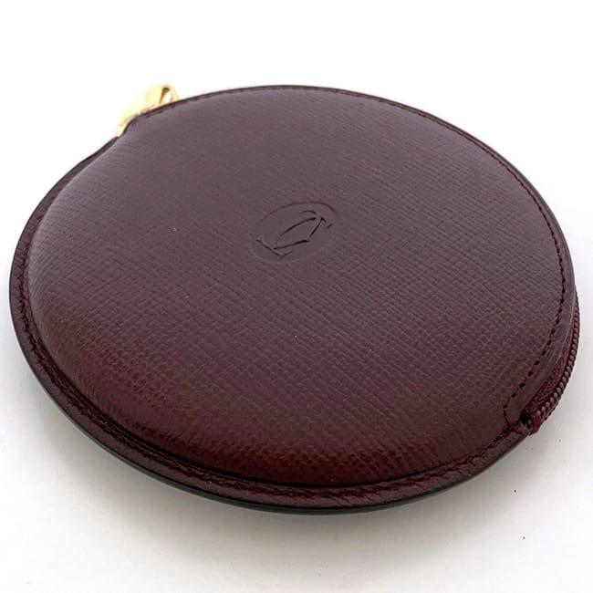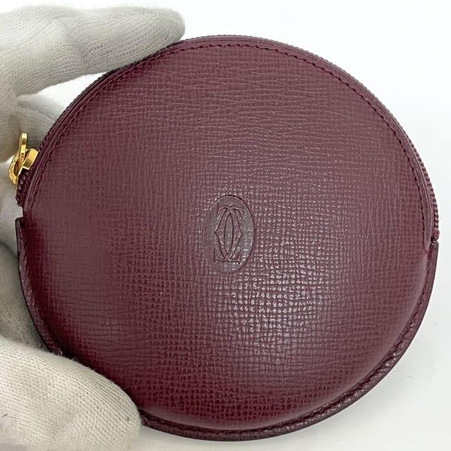 カルティエ コインケース ec-22892 ボルドー マスト 美品 小銭入れ レザー 中古 Cartier 丸型 ファスナー グレインレザー ヴィンテージ ワンポイント ロゴ 定番 人気 女性 レディース メンズ 革 小さい 丸 小銭 ケース コイン 小物 上品 ブランド 本物 鑑定済み