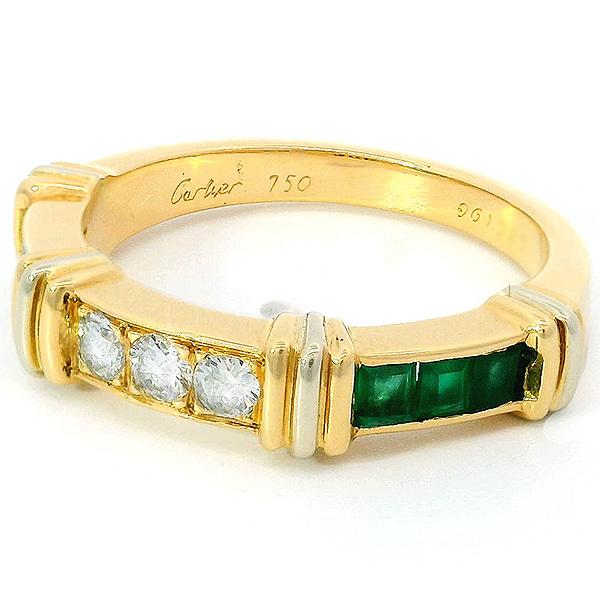 Category: JewelryType: RingBrand: CartierSize: #50 (approx. Japanese size: 10)Width: 4.1mmGemstone: Emerald/DiamondStamp: Cartier 750 96**** 50Weight: 4.1gMaterial: 18K Yellow Gold (18K Yellow Gold) / 18K White Gold (18K White Gold)List Price: -Accessories: Original box and warranty cardCondition: A