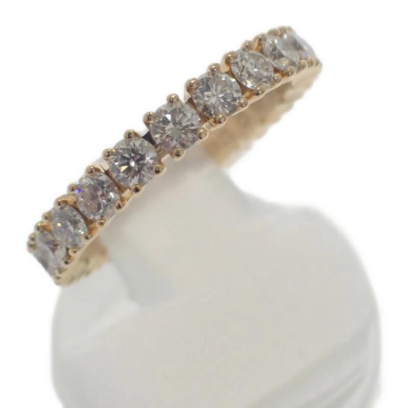 つややかなK18イエローゴールドをベースに、ダイヤモンドが精密にパヴェセッティングされたフルエタニティリング。