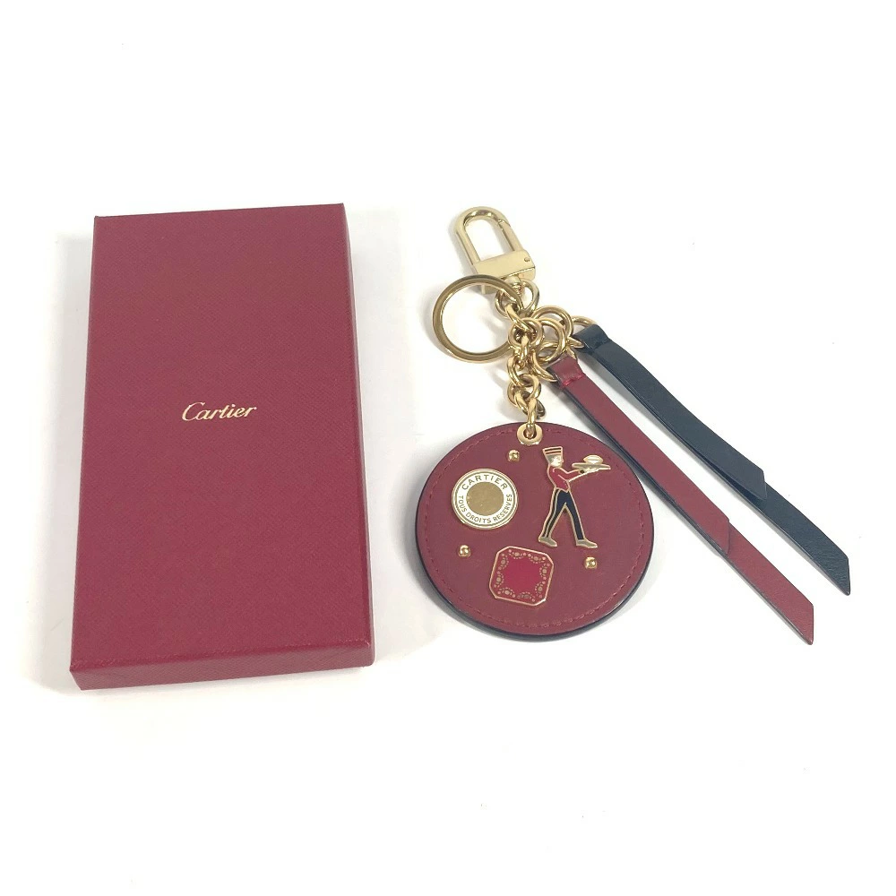 CARTIER Diabolo de Cartier Medallion Key Ring Bag Charm Charm Keychain Leather Women's Red [Pre-owned]
