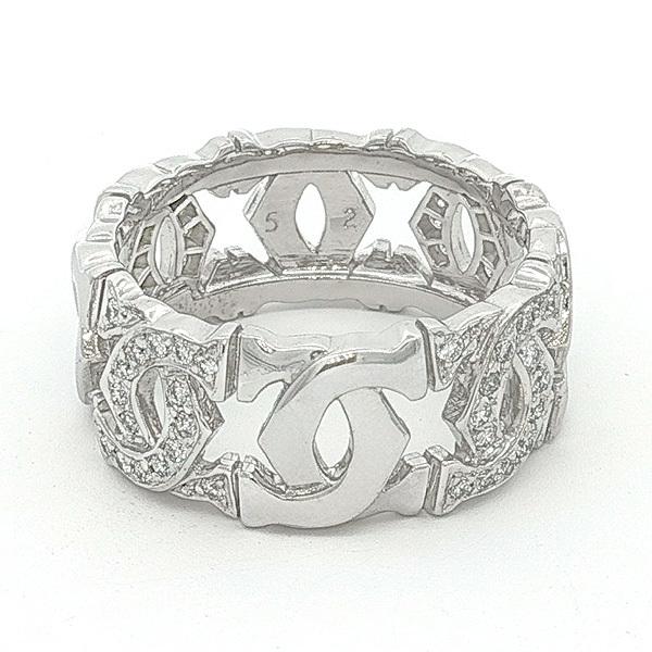 Cartier Entrelacé Half Diamond Ring, 18K White Gold, #52.