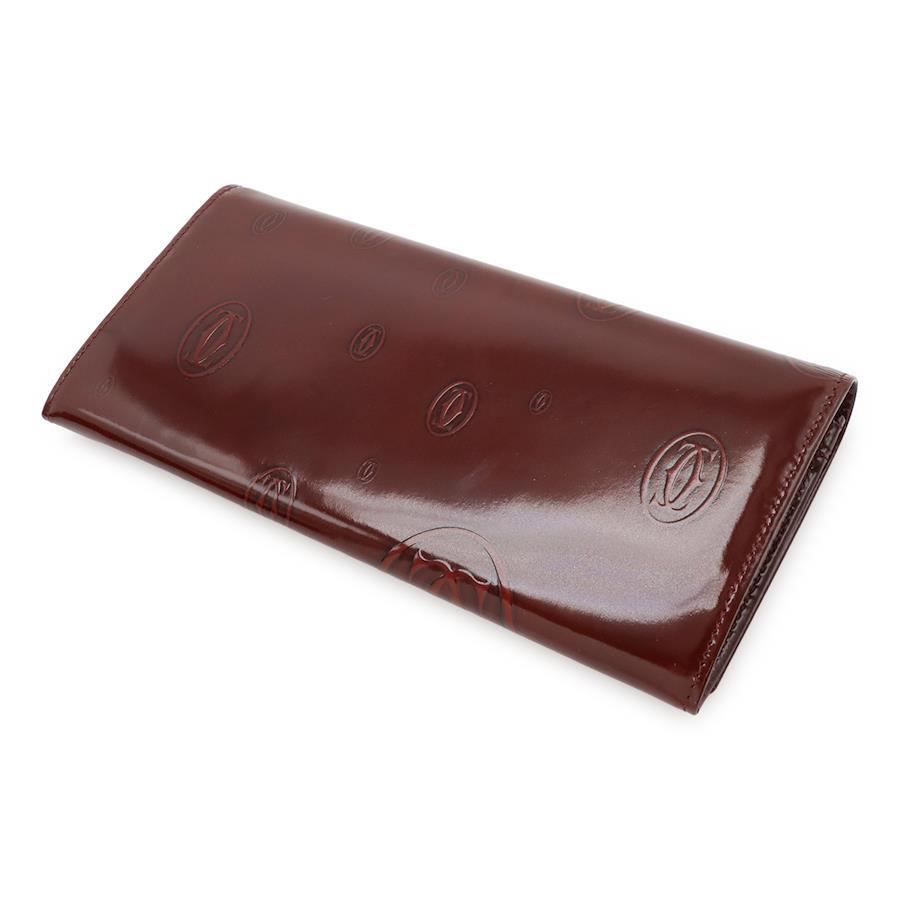 【コメント】大きなダメージ等なく、全体的に状態の良いお品物でございます。カルティエのブランドカラーであるボルドーを用いた、代表的なハッピーバースデーシリーズ。収納力、機能性に優れた2つ折の使いやすい長財布でございます。