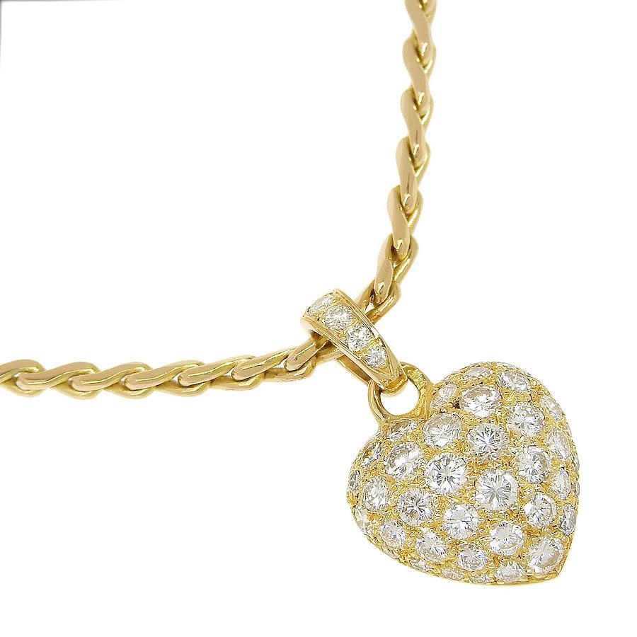 CARTIER Heart Pavé Necklace, 18K Yellow Gold with Diamonds, Approx. 19.0g, Pre-owned, Women's