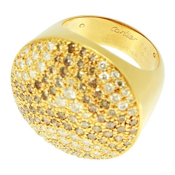 Category: JewelryType: RingBrand: CartierSize: #50 (approx. Japanese size: 10)Width: 23.1mmGemstone: Diamond/Brown DiamondStamp: Cartier 750 14**** 50 CARTIER 1990 (The 1990 stamp is slightly faded.)Weight: 16.5gMaterial: 18K Yellow GoldList Price: -Accessories: Our original boxCondition: A