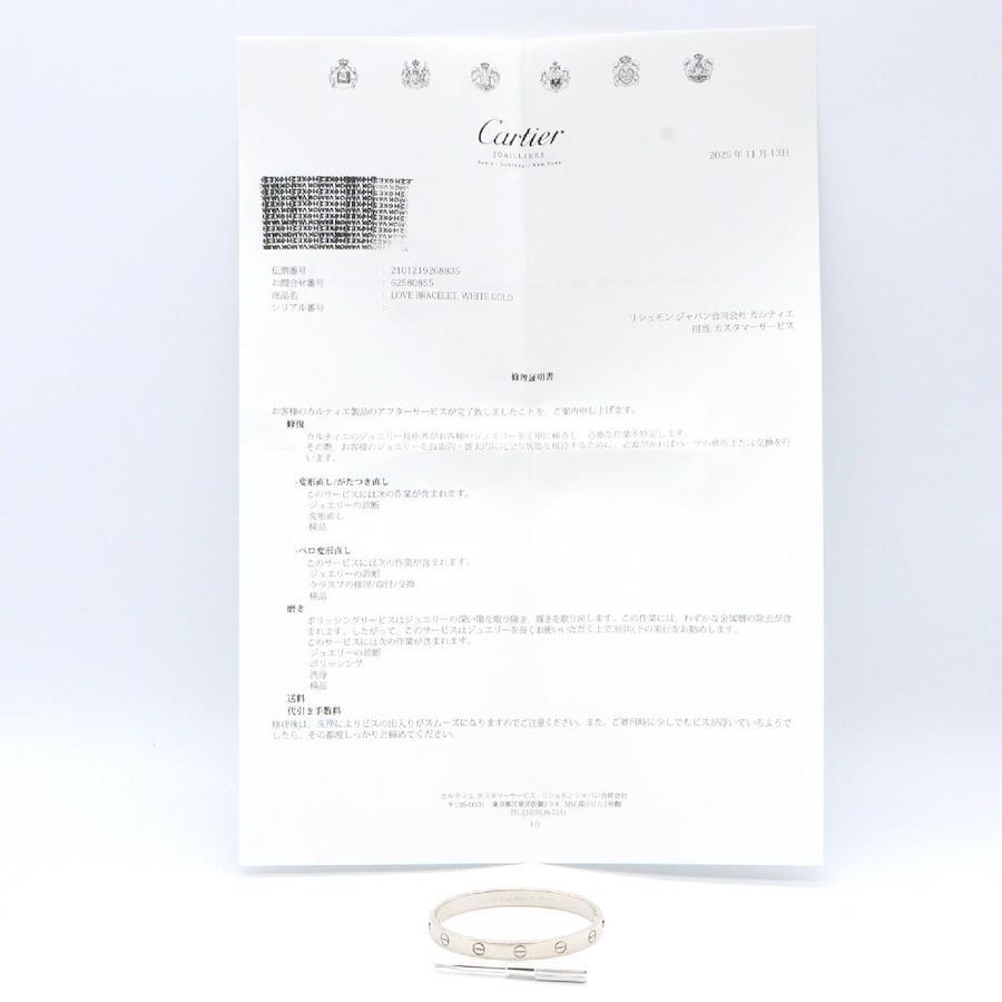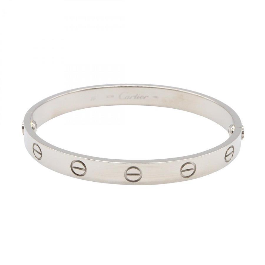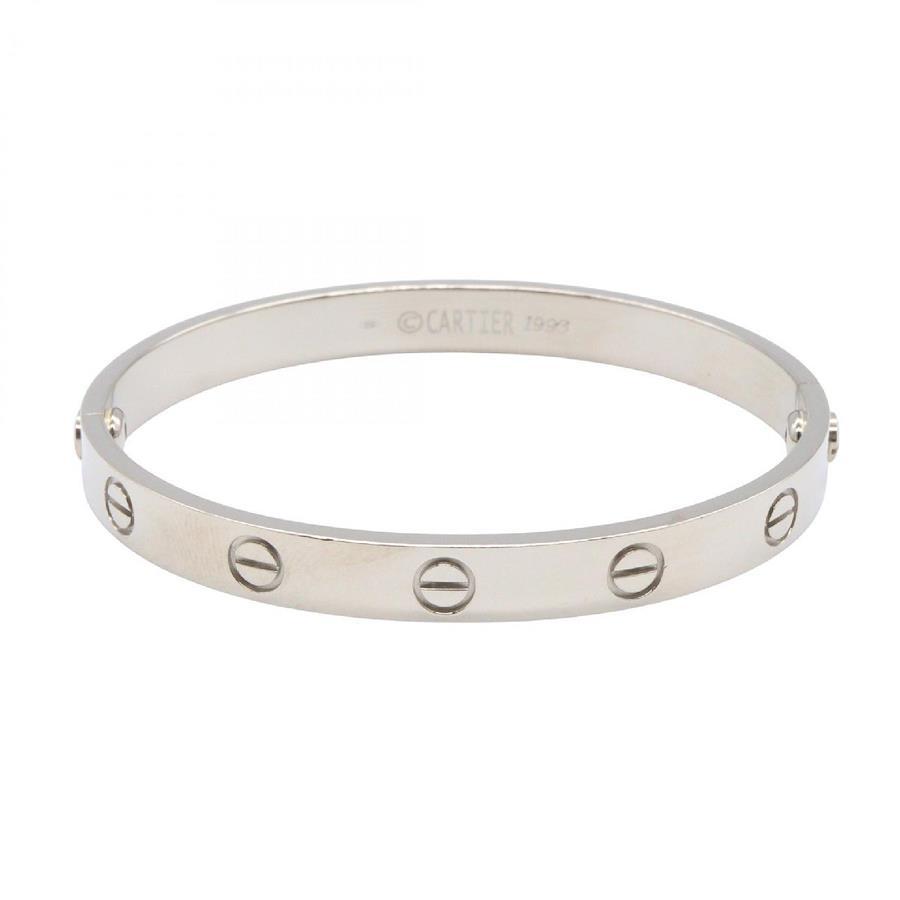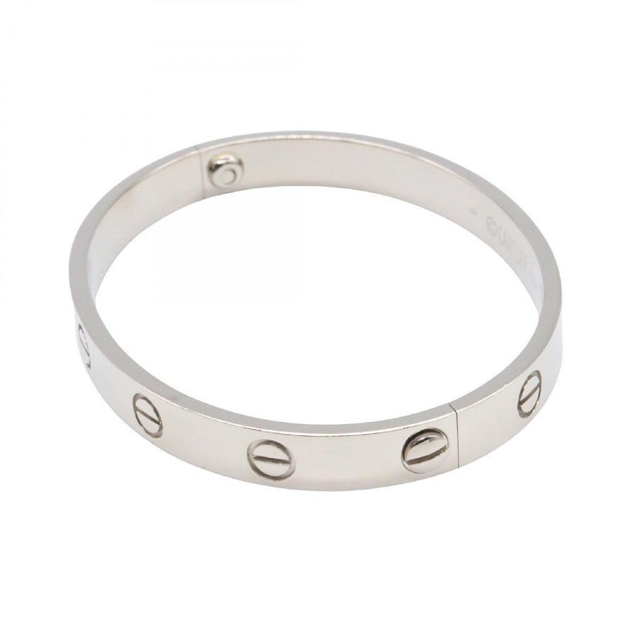 Condition Rank: ASlight signs of wear, scratches, scuffs, and dirt are visible.Brand: CARTIERProduct Name: Love BraceletModel Number: B6067617Color: SilverMaterial: K18WG (White Gold)Size: Wrist Circumference: Approx. 14.5cmWeight: Approx. 32.6gSpecifications: -Accessories: Repair Certificate*Items not listed in the accessories section are not included as a general rule.*If an outer box, dust bag, warranty card, etc. are included, their condition is not included in the product rank.Note: Slight signs of wear are visible. *This item has been polished, but minor scratches may be present. Thank you for your understanding.Individual manufacturing numbers (serial numbers) are not displayed for privacy reasons. However, they are engraved.Other: Colors displayed on your screen may differ from the actual color depending on your display settings. Thank you for your understanding.
