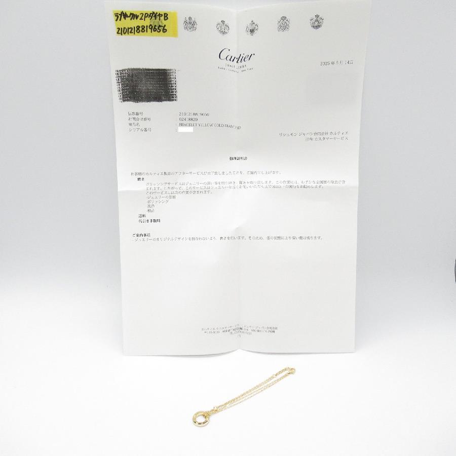 Condition Rank: ASlight signs of wear, scratches, scuffs, and stains are visible.Slight signs of wear are visible. *This item has been polished, but minor scratches may remain. Thank you for your understanding.Brand Name: CARTIERProduct Name: Love Circle Bracelet 2PD BraceletColor: ClearMaterial: Diamond K18 (Yellow Gold) x DiamondSize: Wrist Circumference: Approx. 16/17.5cmMotif Width: Approx. 13mm x Height: Approx. 13mm [Including setting, bail, etc.]Weight: Approx. 4.4gSpecifications: -Accessories: Repair Certificate*Items not listed in the accessories section are not included as a general rule.*If an outer box, dust bag, warranty card, etc. are included, their condition is not included in the product rank.Note: The individual serial number is not displayed for privacy reasons. However, it is engraved.Other: The color displayed on your screen may differ from the actual color depending on your display settings. Thank you for your understanding.