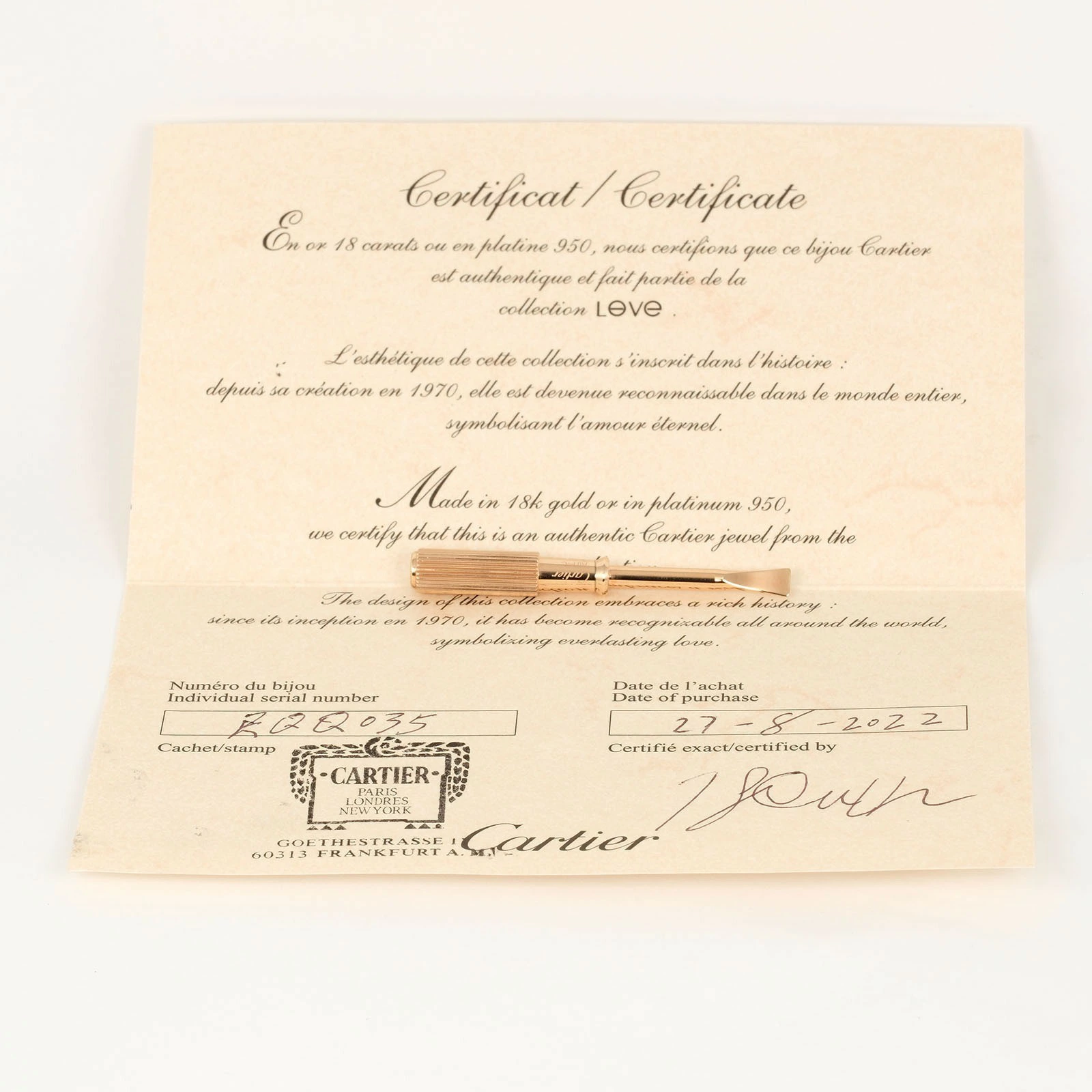 | サイズ備考 | ・ブレスレット内周:約16cm・バンド幅:約6.1mm・第三世代のカルティエ ラブブレスレットです。 |