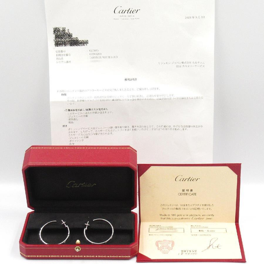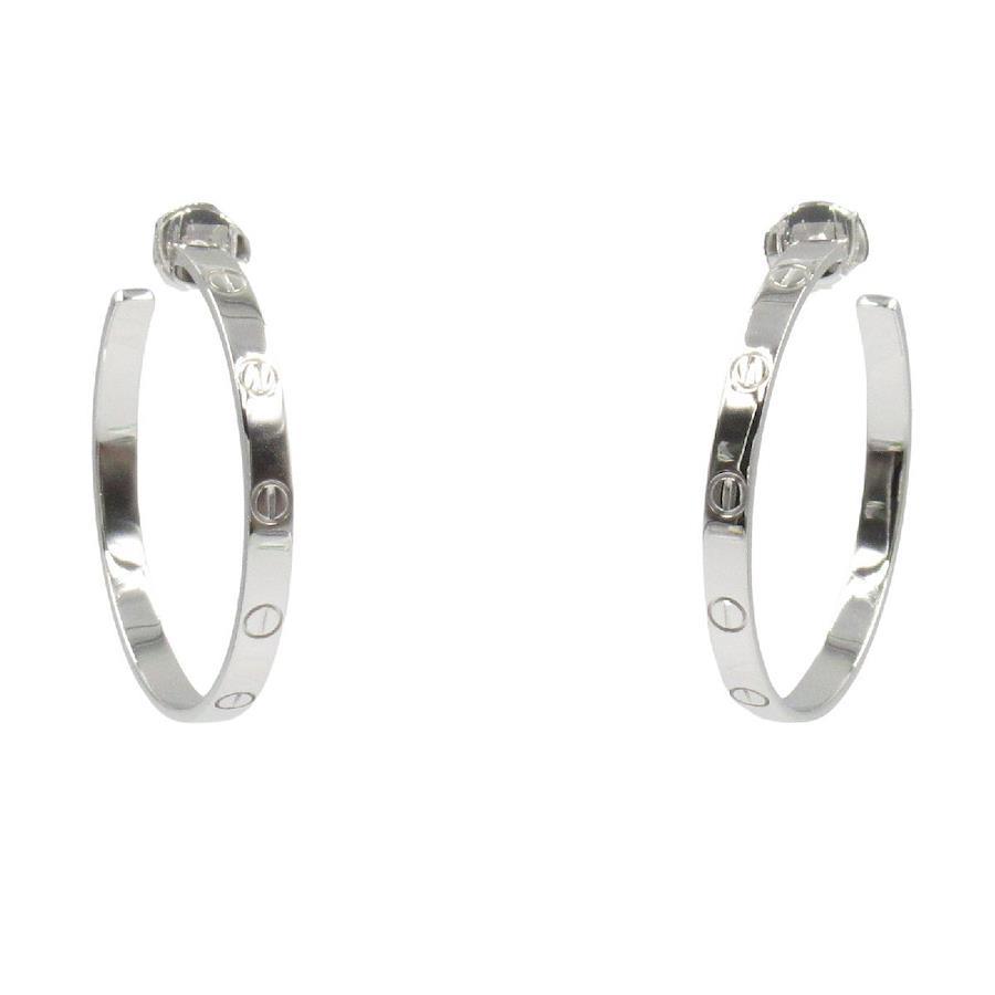 Condition: ASlight signs of wear, scratches, scuffs, and stains are visible.Slight signs of wear are visible. While the item has been polished, minor scratches may remain. Please note.Brand: CARTIERProduct Name: Love Hoop EarringsModel Number: B8028300Color: SilverMaterial: 18K White GoldSize: Approx. 35.0mm x 3.2mmWeight: Approx. 12.8gSpecifications: -Accessories: Warranty, Case, Repair CertificateItems not listed in the accessories section are not included.If an outer box, dust bag, warranty card, etc. are included, their condition is not included in the product rank.Note: For privacy reasons, the individual serial number is not displayed. However, it is engraved.Other: The color displayed on your screen may differ from the actual color depending on your display settings. Thank you for your understanding.