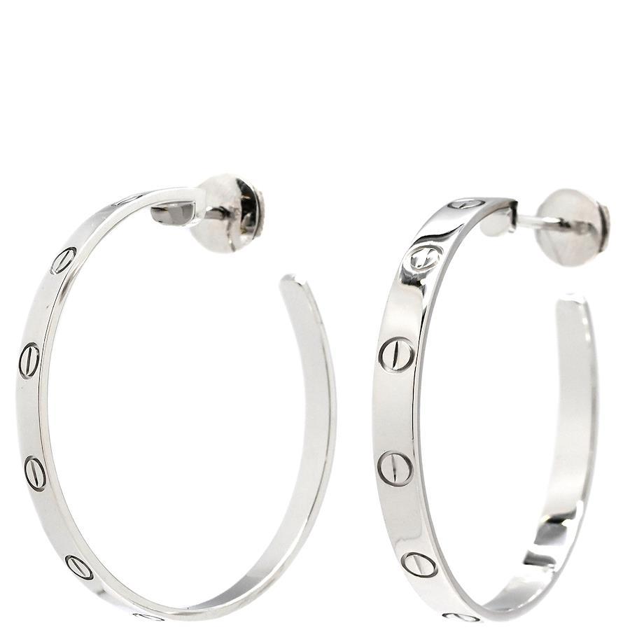 Cartier Love Hoop Earrings, 18K White Gold (750/18K White Gold) B8028300, Women's, Warranty Included, Classic, Popular, Excellent Condition, Pre-OwnedBrand: CartierModel Number: B8028300Features:Color: White GoldMaterial: 18K White GoldSize: 3.6 x 35mmWeight: 12.7gAccessories: Warranty (Purchased overseas in 2009)*No accessories other than those listed are included.Rank: SA [Overall Condition Details]This item has been polished to a new condition in our workshop, so it is in excellent condition overall. *It may not be possible to remove all scratches and stains. Please note that the item has been polished only to the extent that the engraving has not faded, so there may be some signs of wear.[Condition Details] Like NewThere are minor scratches and dents that cannot be polished away, and there is slight distortion to the post. *Reference price: 792,000 yen (as of October 2025)