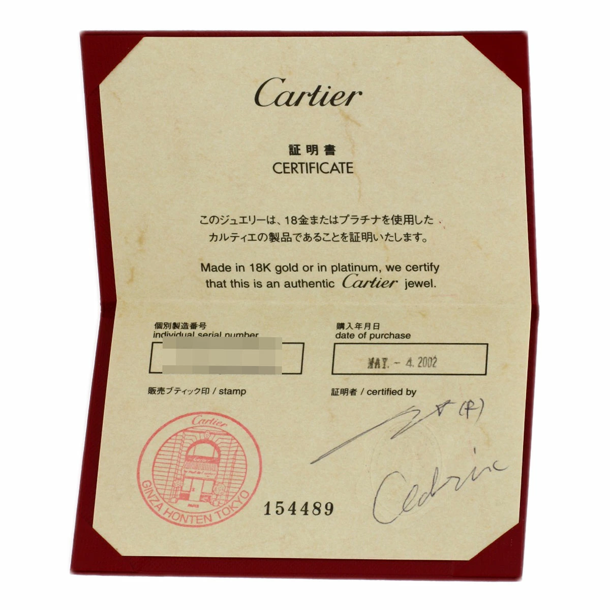 | 付属品 | カルティエ保証書 |