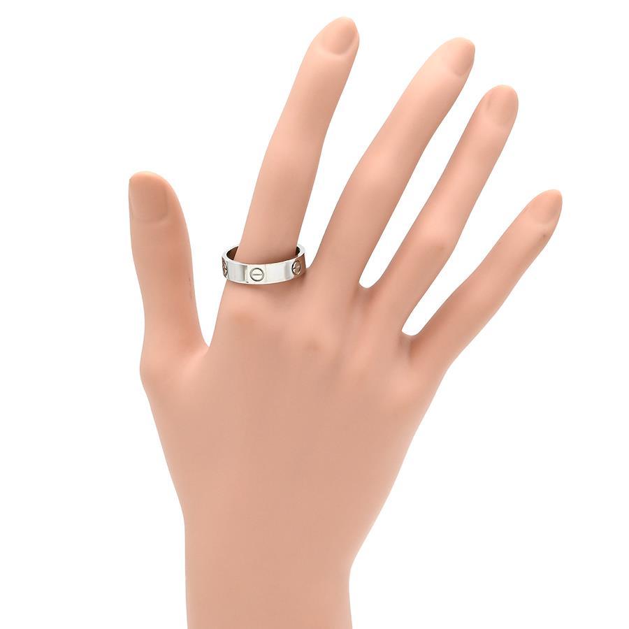 Cartier Love Ring, Pt950 Platinum Silver, Size 22, #63, Men's, Pre-ownedBrand: CartierModel Number: -FeaturesColor: Platinum/SilverMaterial: Pt950Size: #22Ring Maximum Width: 5.3mmRing Inner Diameter: 20.2mm#63Note: This size is measured using our ring gauge and may differ from the manufacturer's stated size.Manufacturer's stated size: #63Weight: 10.7gAccessories: NoneRank: AB [Overall Condition Details]This item shows some overall damage due to use and storage. *See images and comments.[Condition Details] UsedThere are minor scuffs, scratches, dents, and discoloration throughout.