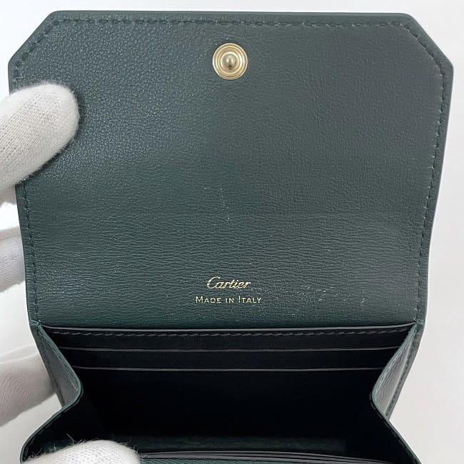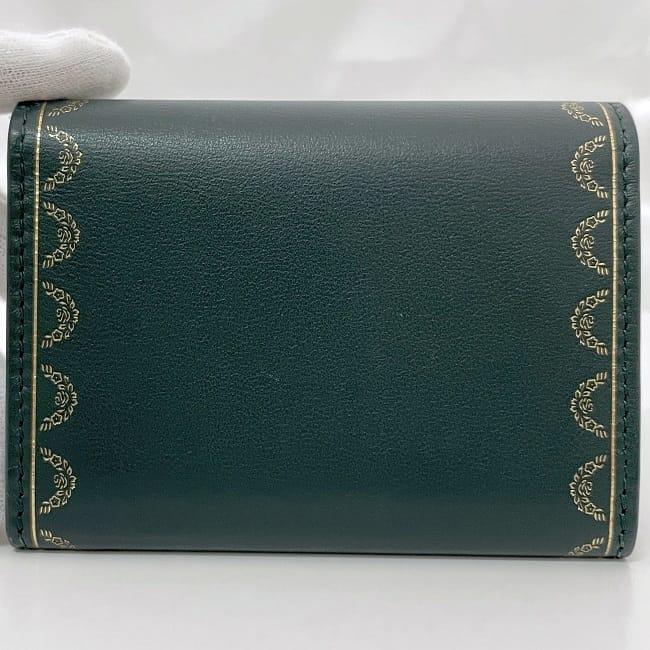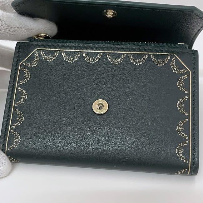 カルティエ ミニ 財布 ec-23666 グリーン ゴールド ガーランドドゥカルティエ CRL3001740 美品 レザー 中古 Cartier 小銭入れ 深緑 コンパクト フラップ ホック ヴィンテージ メンズ レディース 定番 人気 箱付き 本革 シンプル ブランド 本物 鑑定済み