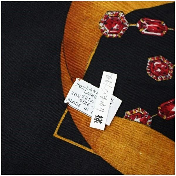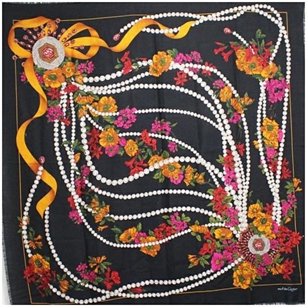 商品名カルティエ マストドゥカルティエ ウール シルク 大判ストール ブラック×マルチカラー 宝石柄 中古 Aランク Cartier