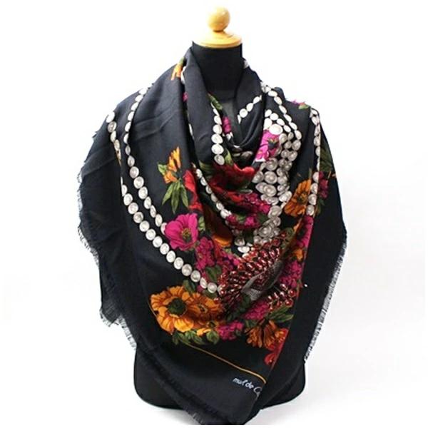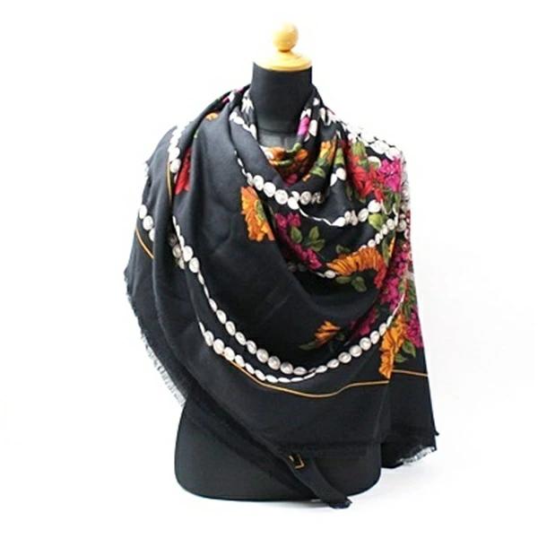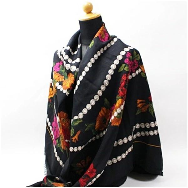 状態柔らかな手触りのウール×シルクストールです。落ち着いたブラックに華やかな宝石柄が高級感のあるアイテムです。