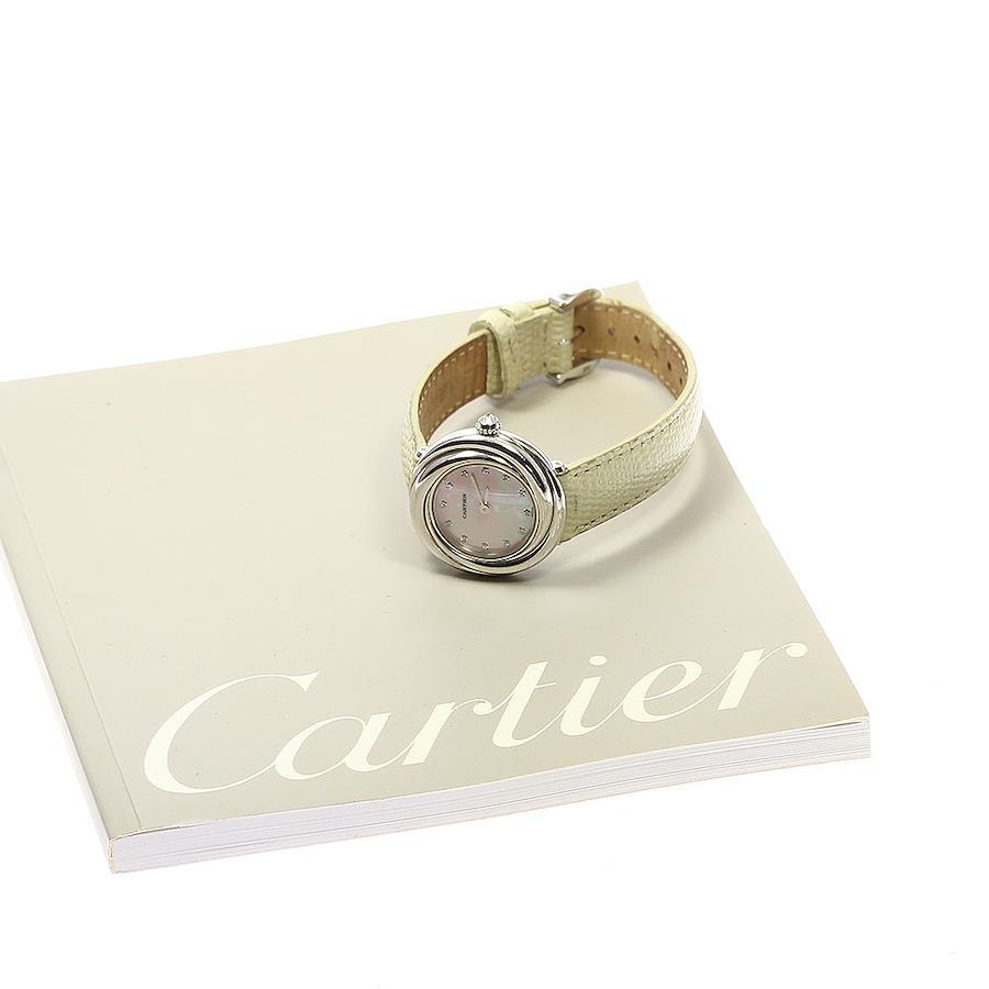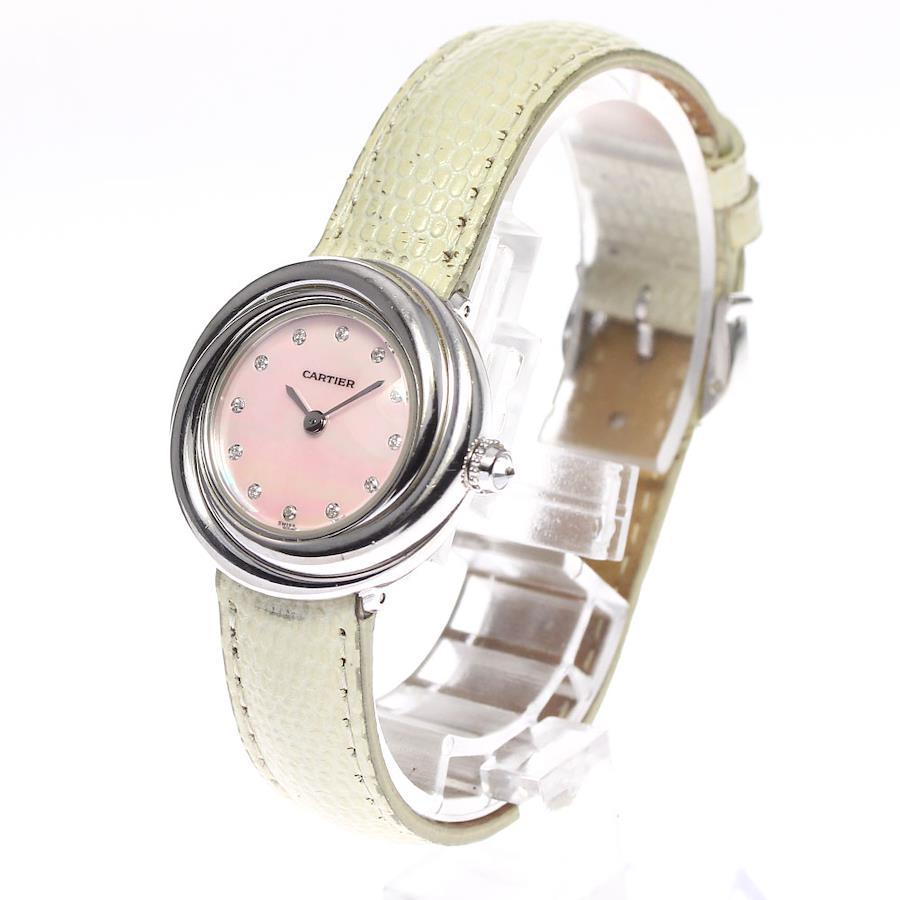 ■商品情報ブランド: カルティエ/CARTIERモデル名: マスト トリニティ対象: レディース素材: K18WG × 革(尾錠K18WG)文字盤色: ピンクシェルムーブメント:クォーツRef.No: WG200846シリアル:382****付属品:保証書(冊子)ケースサイズ(w):約 27mmベルトサイズ:約 16.5cm※ベルトサイズとは、ケース部分も含めた総腕回りのサイズになります。ラグ幅: 13mm重量(本体):38.2gOH歴: 弊社では実施しておりません。保証書の情報: 200104/03(国内正規店)