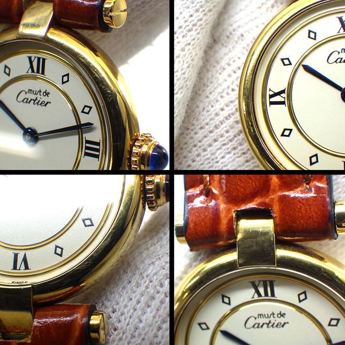■商品名Cartier 腕時計 マストヴァンドーム SM 590004 アイボリー文字盤 ローマンインデックス ブラウン カーフレザーベルト GP SV925 クオーツアナログ