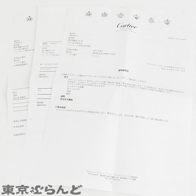BrandCartierProduct NameSantos de Cartier Necklace Medium ModelOverviewWidth: 0.5cmTotal Weight: 55.4gModel NumberB7009100Material18K White GoldSizeNeck Circumference: Approx. 56cmColorWhite GoldAccessoriesRepair Certificate (Authorized Store Repair Certificate/Delivery Note/Invoice/2025.10.20)Item Count9.5NoteRefurbished at an authorized store on October 20, 2025.*There are some minor scratches that could not be polished away.