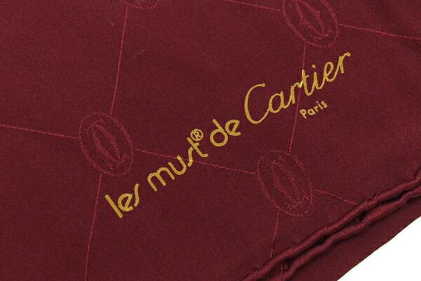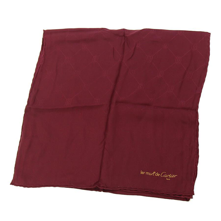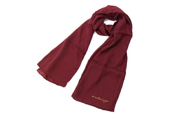 カルティエストールマストボルドーシルク100%中古ストールショール長方形ファッションロゴレディースメンズCartier
