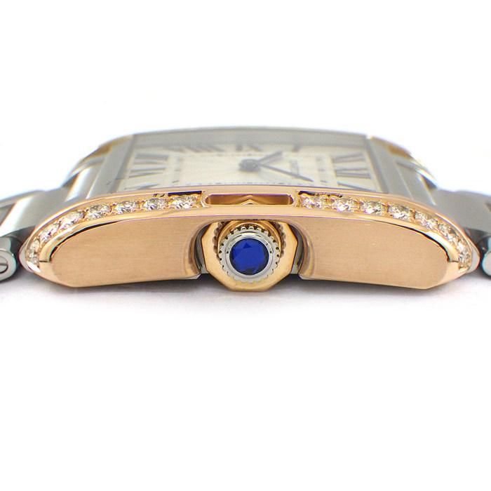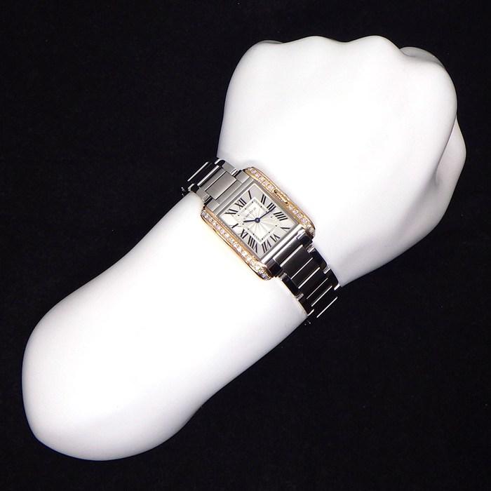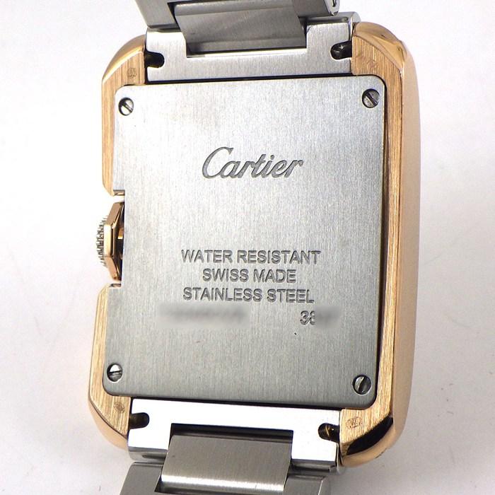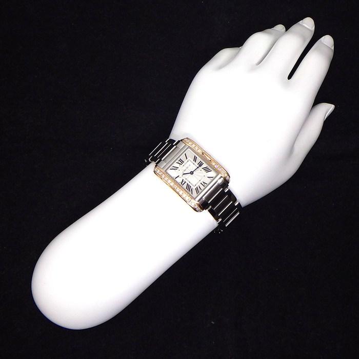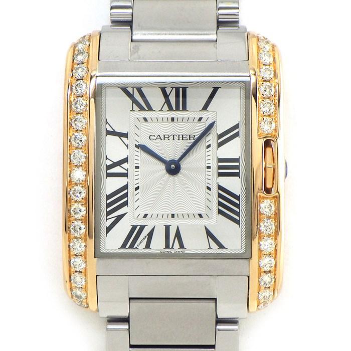 ■商品名Cartier 腕時計 タンクアグレース MM W3TA0003 レクタンギュラー ローマンインデックス ダイヤベゼル シルバーギョーシェ文字盤 K18PG SS クオーツアナログ 【中古】