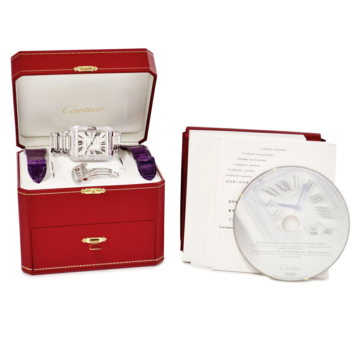 | 付属品 | ギャランティ(2014年購入/国内正規店)・品質証明書・取扱説明書・冊子・DVD・純正替えK18WG無垢製バックル・純正替えクロコベルト(紫/使用感有)・BOX(少々劣化有) ※記載している物以外の付属品は御座いません。 | |||||||
