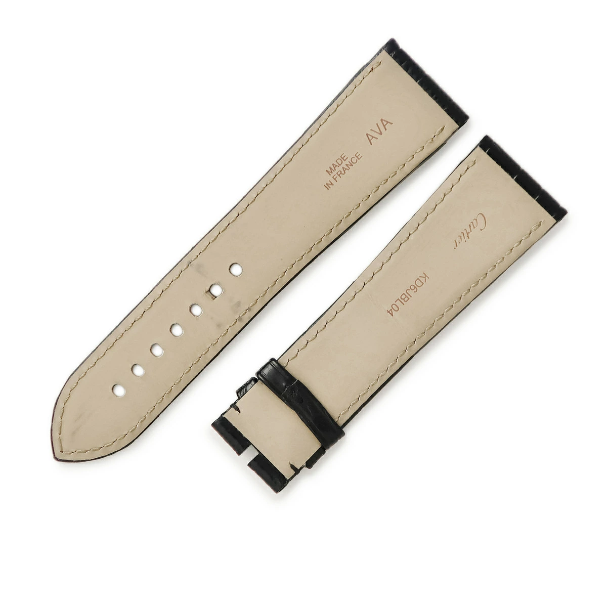 カルティエ Cartier 腕時計パーツ タンク ディヴァン用 クロコバンド クロコダイル ブラック 純正 替え ベルト ストラップ Dバックル用 24mm 黒 - メンズ定番 人気 美品 【中古】