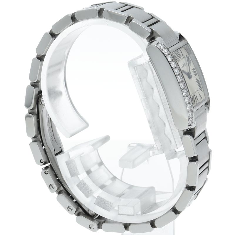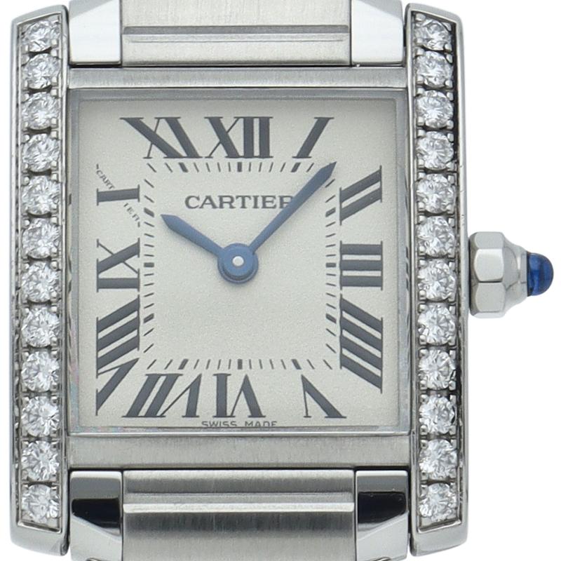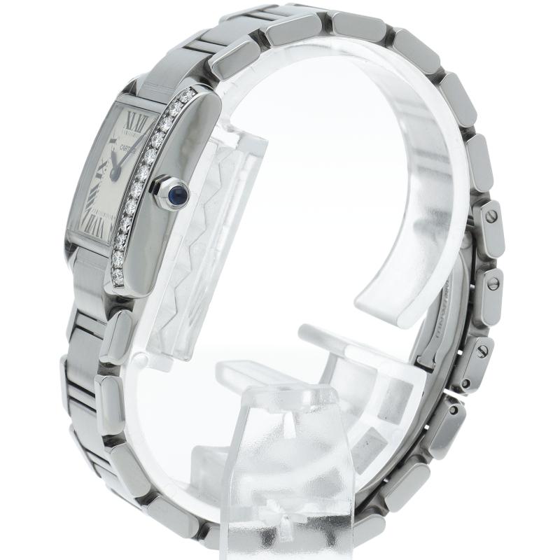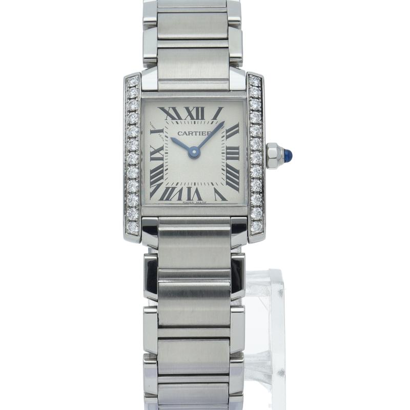 商品説明:カルティエの人気モデル「タンクフランセーズ」。ケースサイドにダイヤモンドがセッティングされたワンランク上のモデルです。