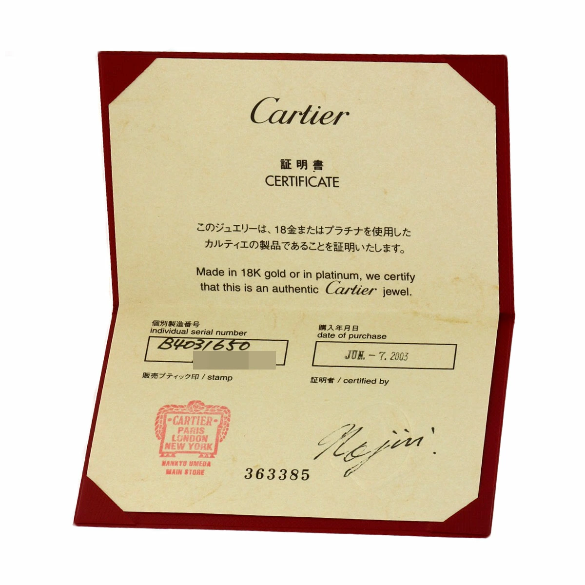 | 付属品 | カルティエ保証書 |