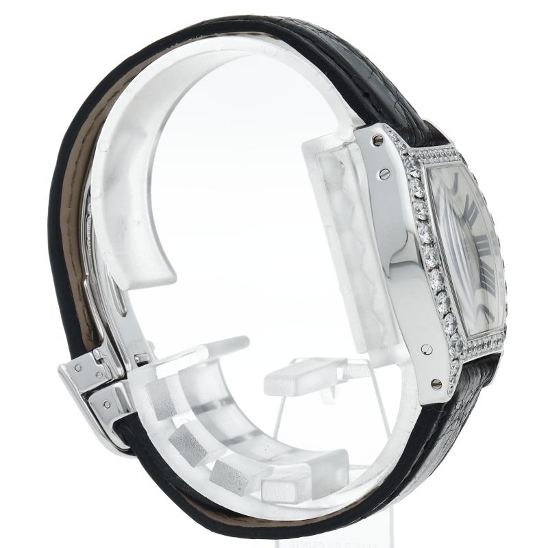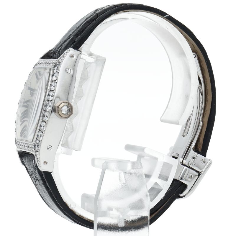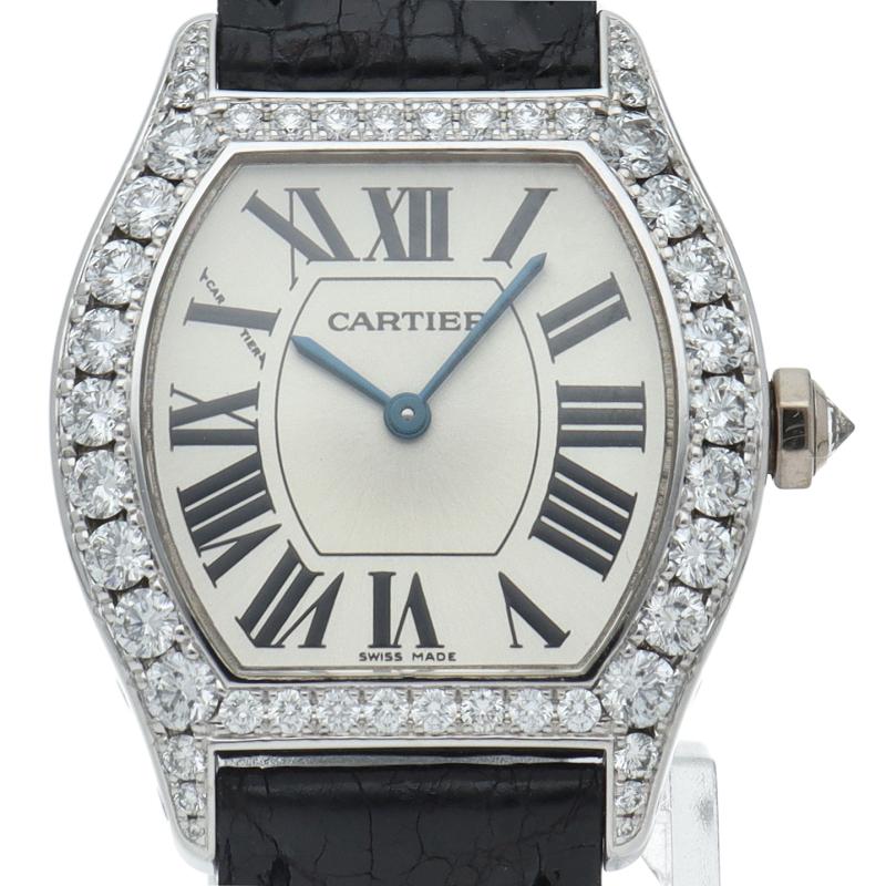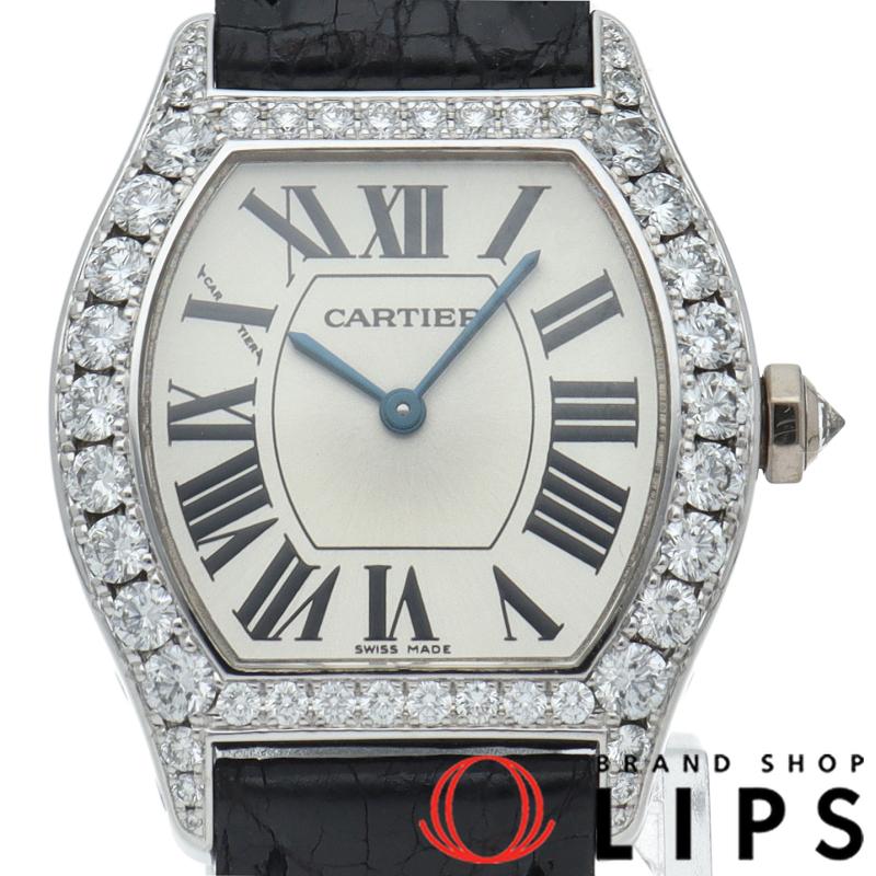 商品説明:亀の甲羅をモチーフとした「トーチュ」。ホワイトゴールドケースに46個、リューズに1個(計1.75ct)のダイヤモンドをセッティングした豪華な腕時計です。また、ケースは裏スケルトンになっており、カルティエならではの意匠を施された美しい手巻きムーブメントを眺めることが可能です。
