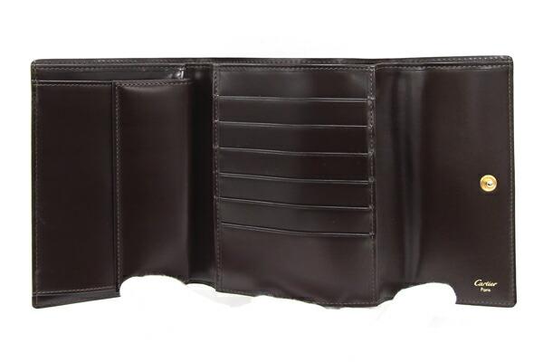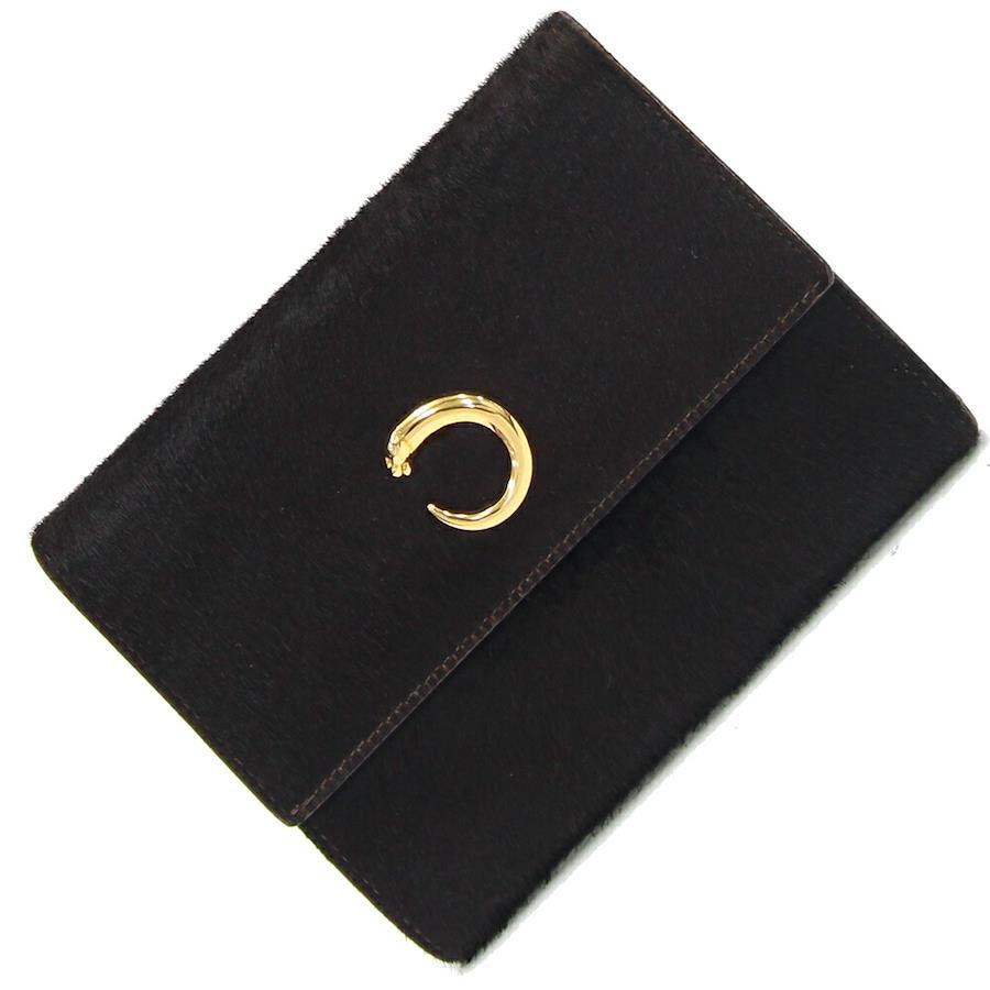 カルティエ三つ折り財布パンテールダークブラウンハラコレザー中古パンサーゴールド金具レディース女性Cartier