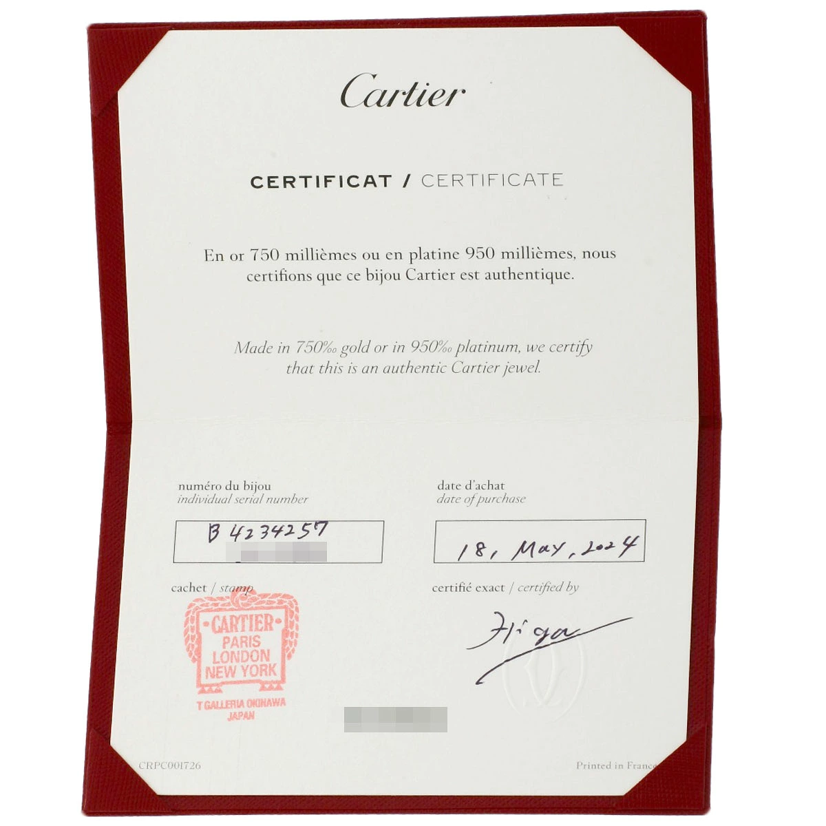 | 付属品 | カルティエ保証書 |
