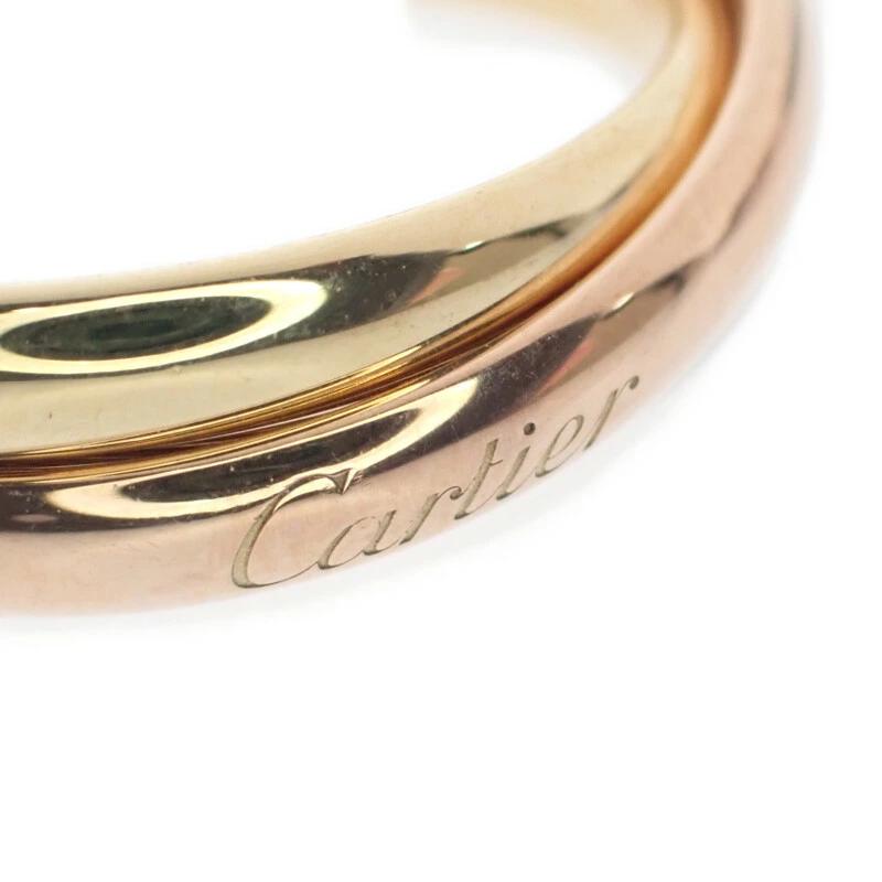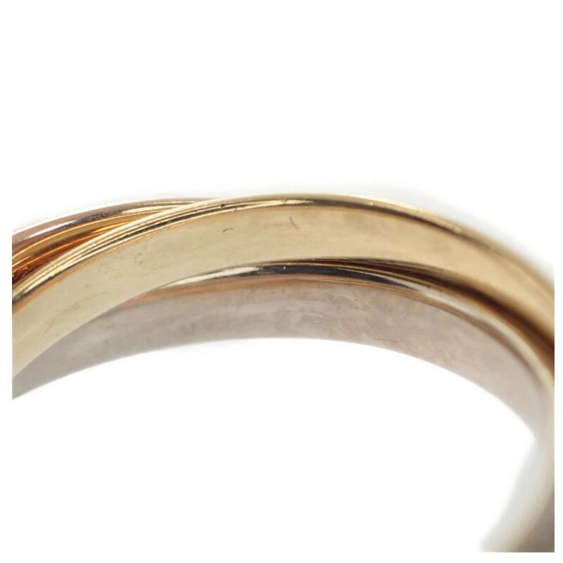 イエロー、ホワイト、ピンクの3種のゴールドが絡み合うリングで構成された、カルティエの人気シリーズ「トリニティ」のアイテム。