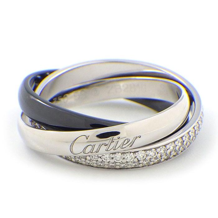 ■商品名Cartier リング トリニティ SM B4235453 フルサークル ダイヤモンド ブラック セラミック K18WG 13.5号 / #53 【中古】