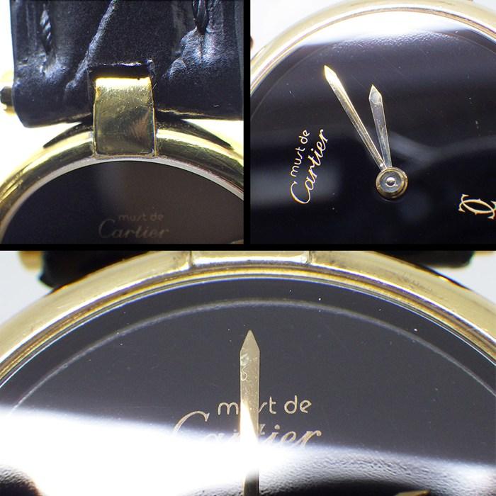 ■商品名Cartier 腕時計 ヴェルメイユ マストヴァンドーム SM ブラック文字盤 カーフレザーベルト GP SV925 クオーツアナログ