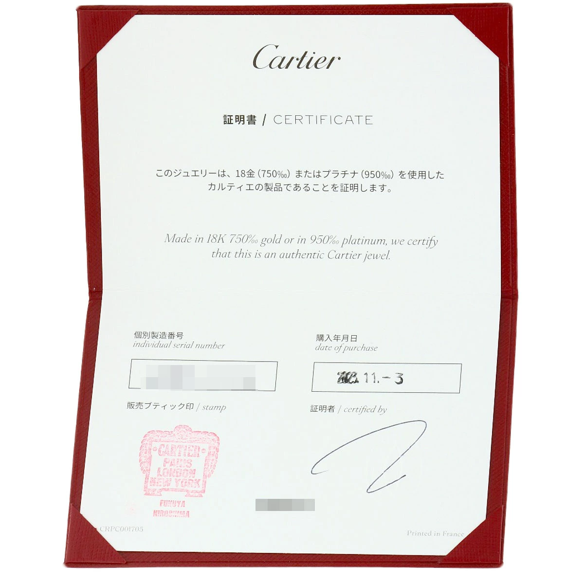 | 付属品 | カルティエ保証書 |