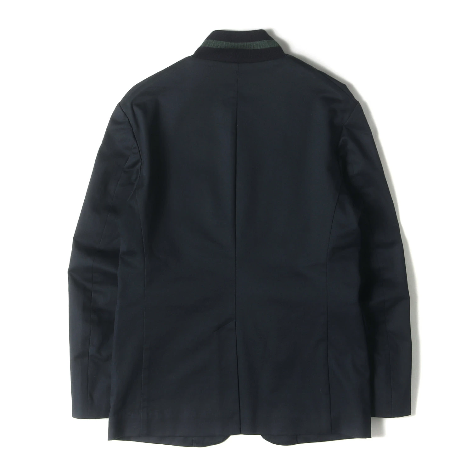| 商品説明 | コットンギャバジンクロスを使用し、ライン入りリブ編みカラー、フロント4つボタン、背抜き裏地、フロントダーツ、センターベント仕様で仕上げられたブレザージャケットです。 |