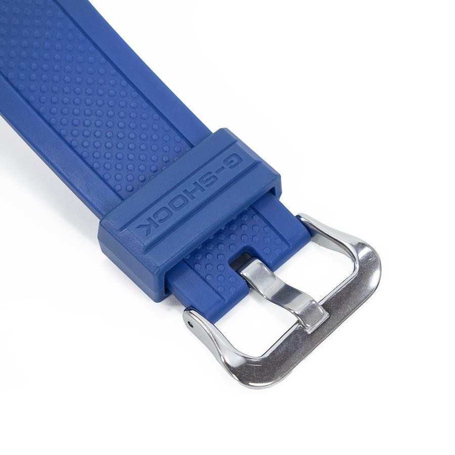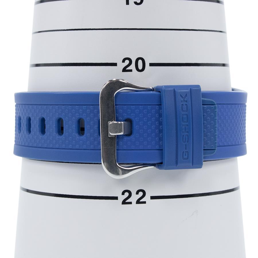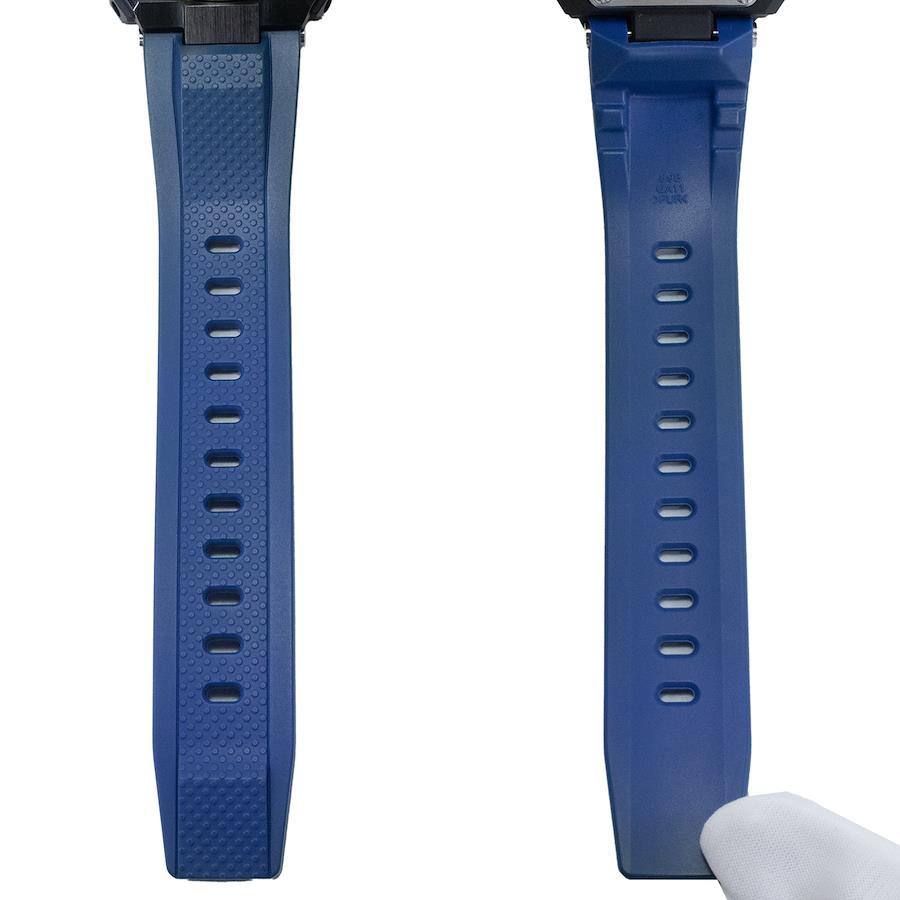 鮮やかなブルーの樹脂ベルトが、ラグジュアリーなフェイスにスポーティな軽快さを加えました。