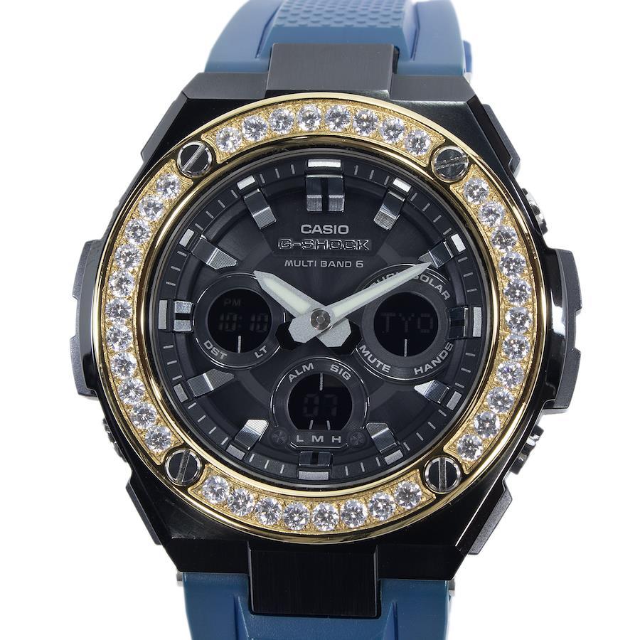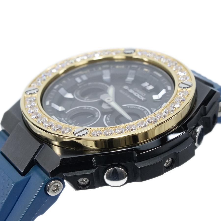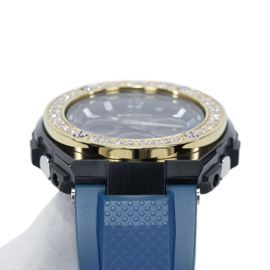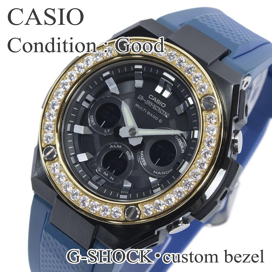 CASIO Men's G-SHOCK Crown Custom Model GST-W300G Solar-Powered Radio-Controlled Watch, Black, Gold, and Blue, Featuring a Bling Y2K Logo and Beads, Unique Design, Made in Japan, Model Number X423