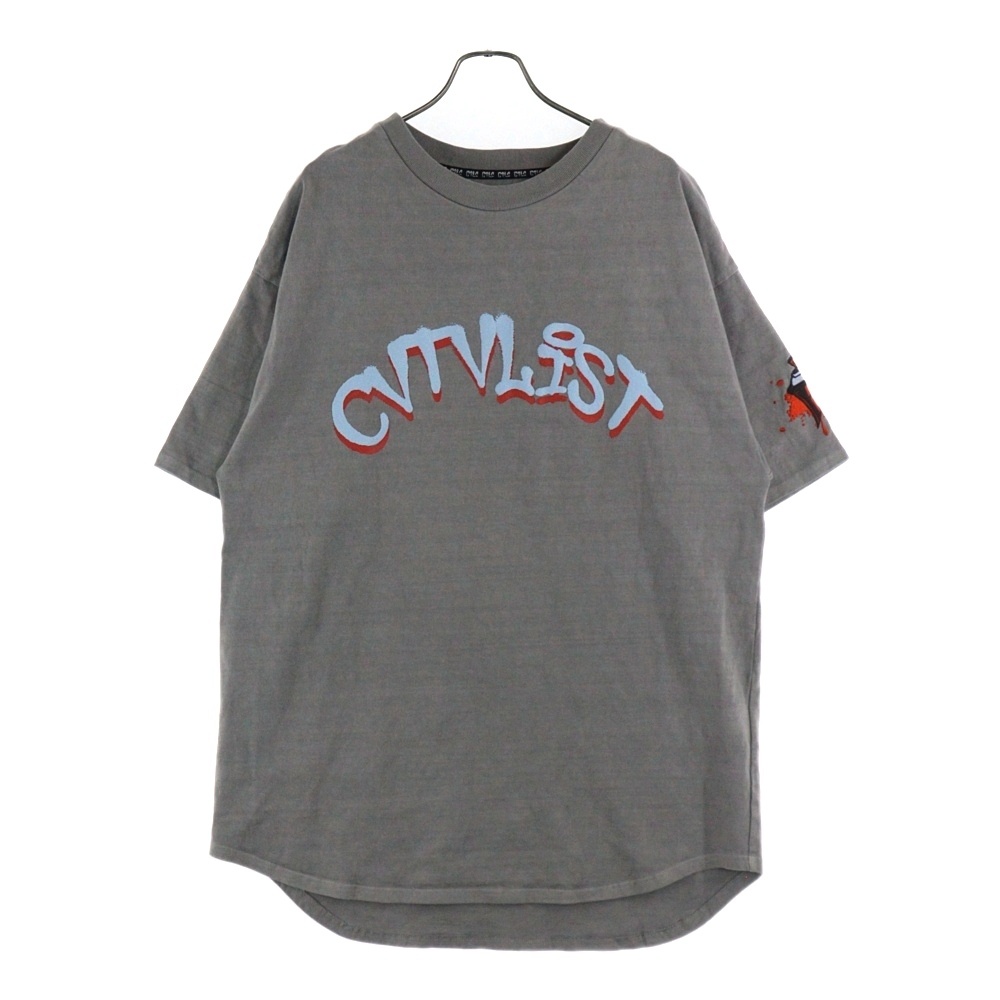 [モデル]CTLS アーチロゴ両面プリント刺繍デザインクルーネック半袖Tシャツカットソー グレー 2101090307