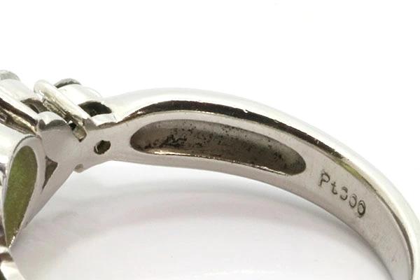 | 状態 | 【商品状態】プラチナ部分の内側のへこみ部分に汚れがあります。また微細なキズ、スレがございますが、肉眼で見て気になるほどではございません。 【石の評価】通常の蛍光灯の光でも薄っすらと中央に線が入り、色味はややクリアなライトグリーンです。脇石のダイヤモンドはおおよそSIクラスでややお色味を感じます。 |