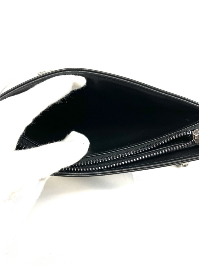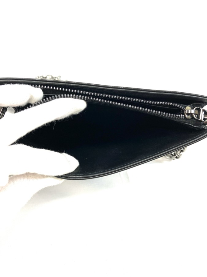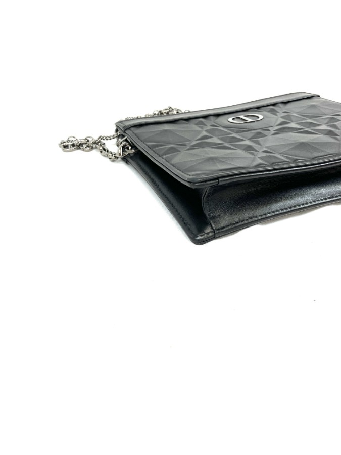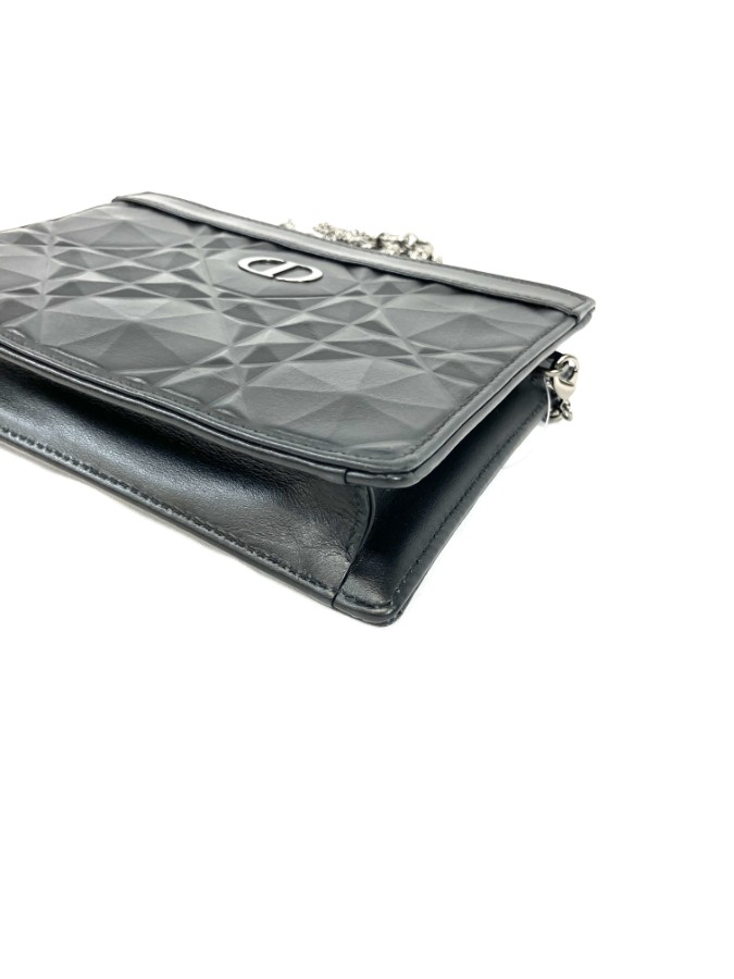 商品説明フロントにアイコニックな「CDロゴ」をあしらった、エレガントなチェーンショルダーバッグです。上質なブラックレザーに幾何学的なキルティングデザインが施され、洗練された印象を演出。細身のチェーンストラップはショルダーでもクロスボディでも使用可能で、デイリーからフォーマルシーンまで幅広く活躍します。コンパクトながら必要最低限の収納力があり、海外でも人気の高いモデルです。