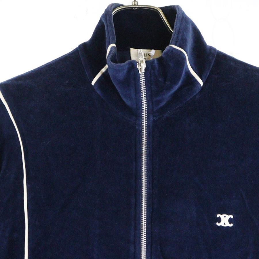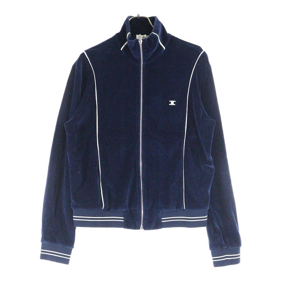 Celine 20SS Triomphe Embroidered Velour Track Jacket, Navy, Size XS, 2Y146679I