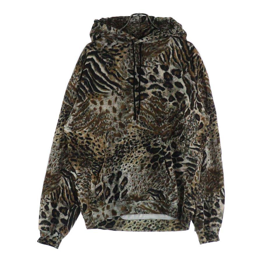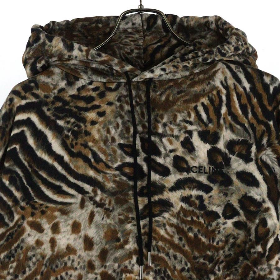 [モデル]21SS Hedi Slimane エディスリマン アニマルプリント ロゴ刺繍 プルオーバーパーカー フーディー ブラウン/ブラック