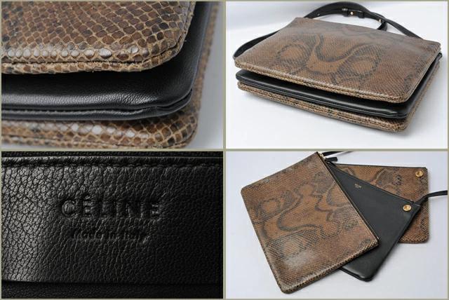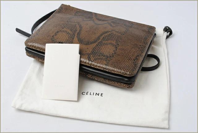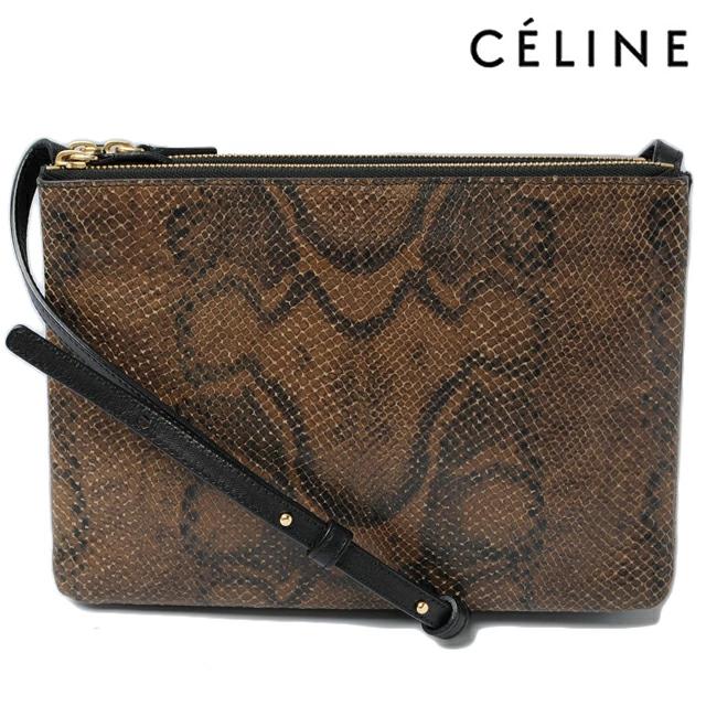 セリーヌより、2wayでのご使用が可能なショルダーバッグ。今、モデルや芸能人、セレブを中心に、ホットなスタイルのバッグです!希少なパイソン型押しとなっており、エキゾチックなデザイン。内側は、高級感の漂うやわらかい手触りの上質のナッパ(羊革)素材取り外しの可能なポーチは、クラッチとして、使用することもできて、とっても便利です。