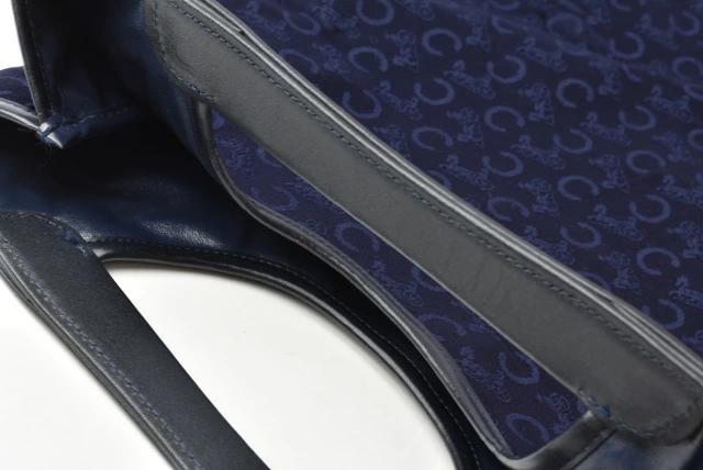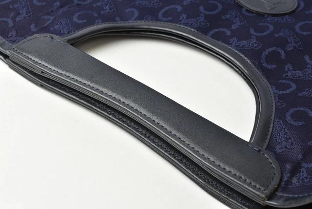 セリーヌより、トートバッグです。化粧品メーカー「ノエビア」とのコラボ商品。日本製のライセンス品で、今となっては、大変希少なヴィンテージバッグです。光沢のある落ち着いたネイビーカラーに、ロゴマークと馬車柄キャンバス生地♪スタイリッシュなフォルムは、男女兼用でお使いいただけます。ビジネスはもちろん、タウンバッグまで幅広くお使い頂きます。【 用途 】ハンドバッグ、